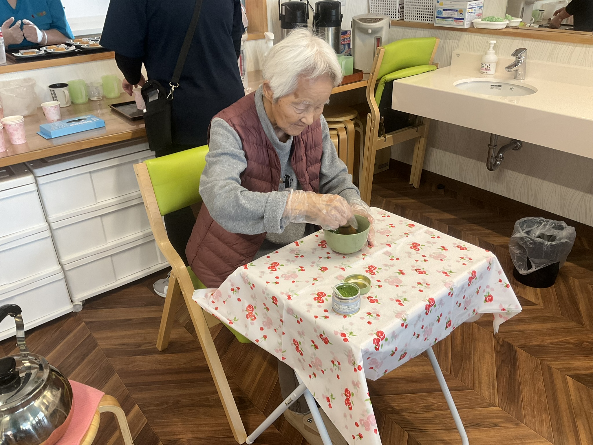 なんと今回の主役は…利用者様の中にいらっしゃる“元お茶の先生”!