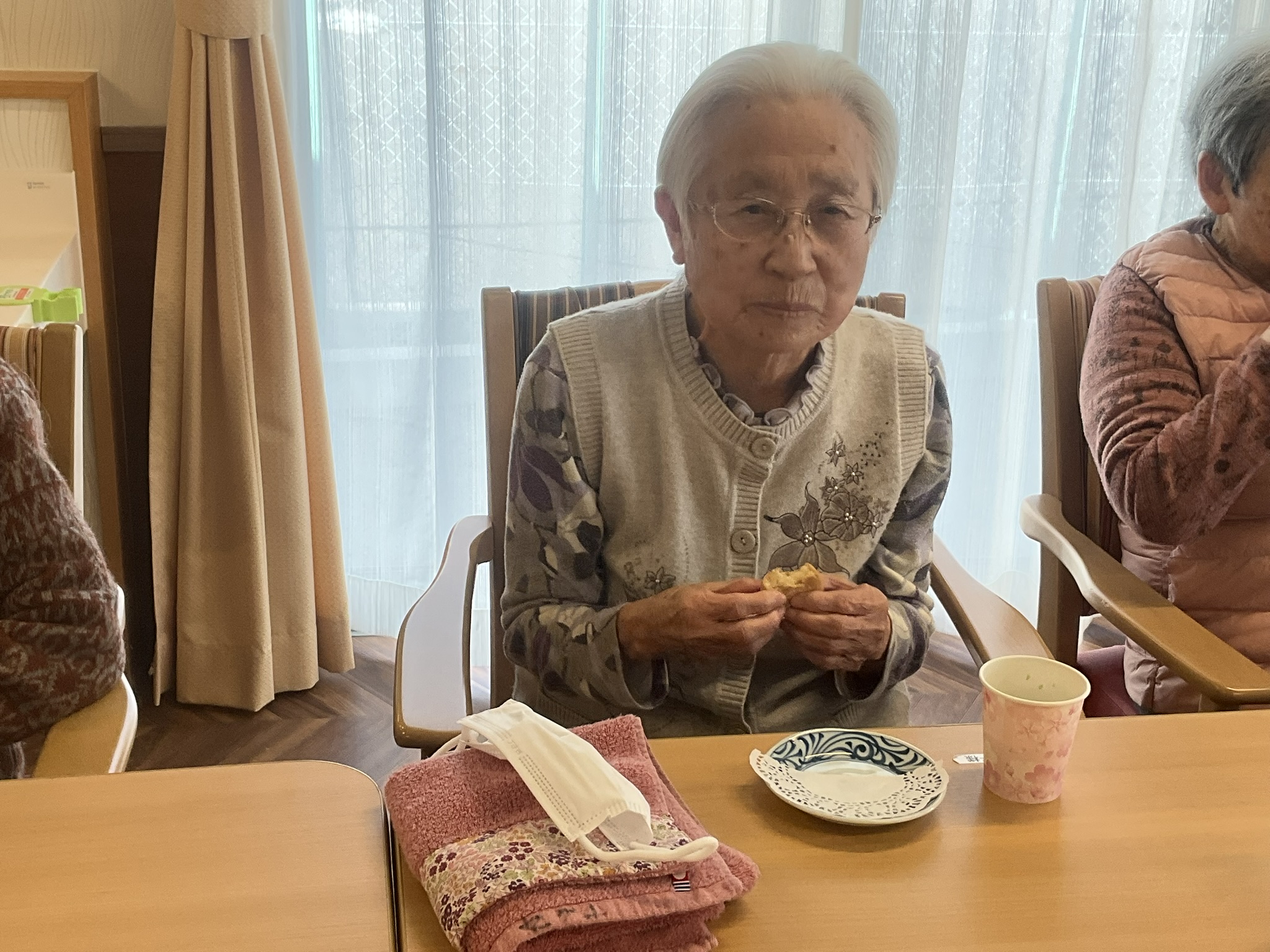 本日のおやつはふっくら甘いおまんじゅう♪