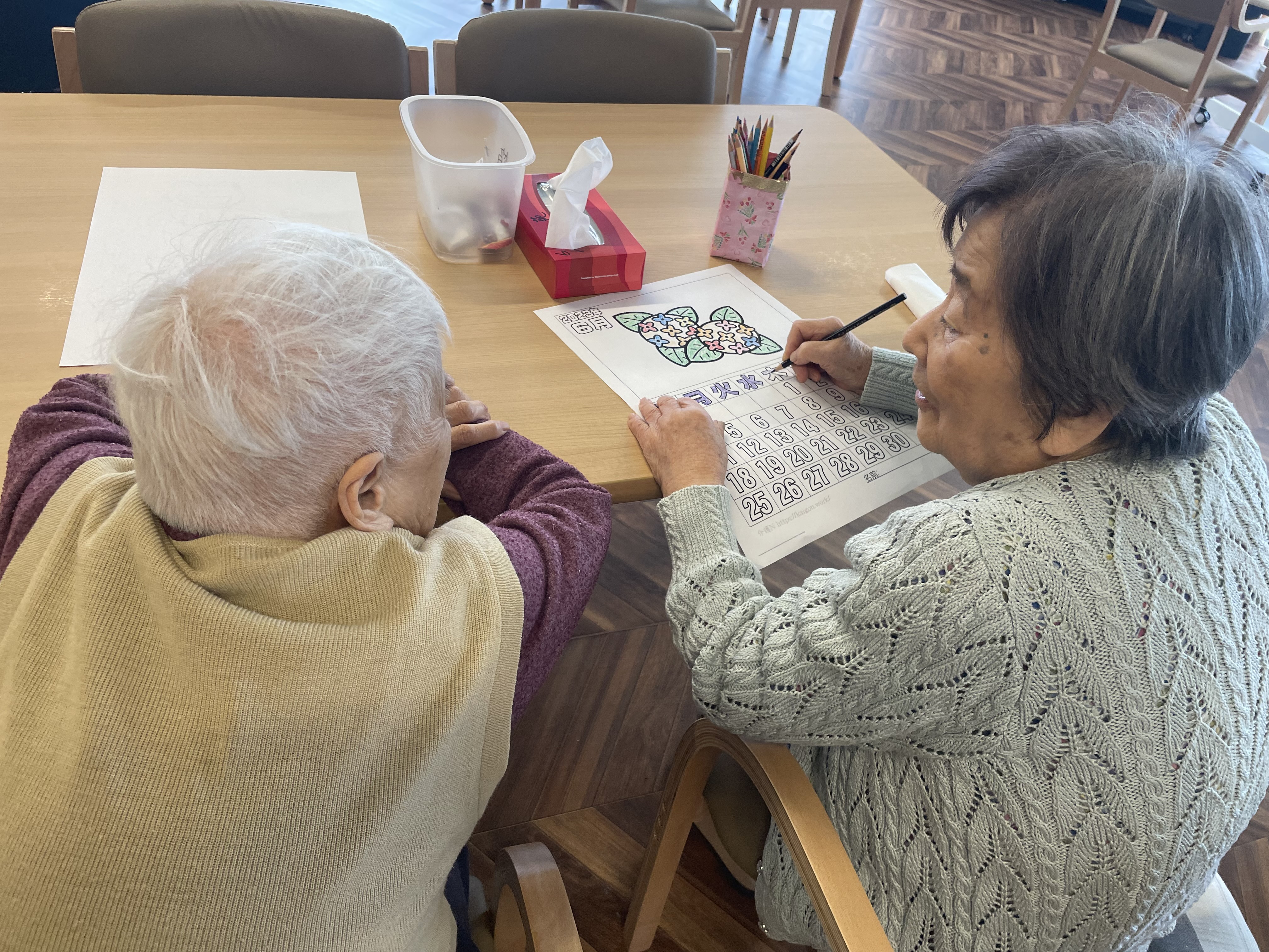 6月のカレンダー、大半は完成したのですが、残っている分を色塗りして完成させます☺