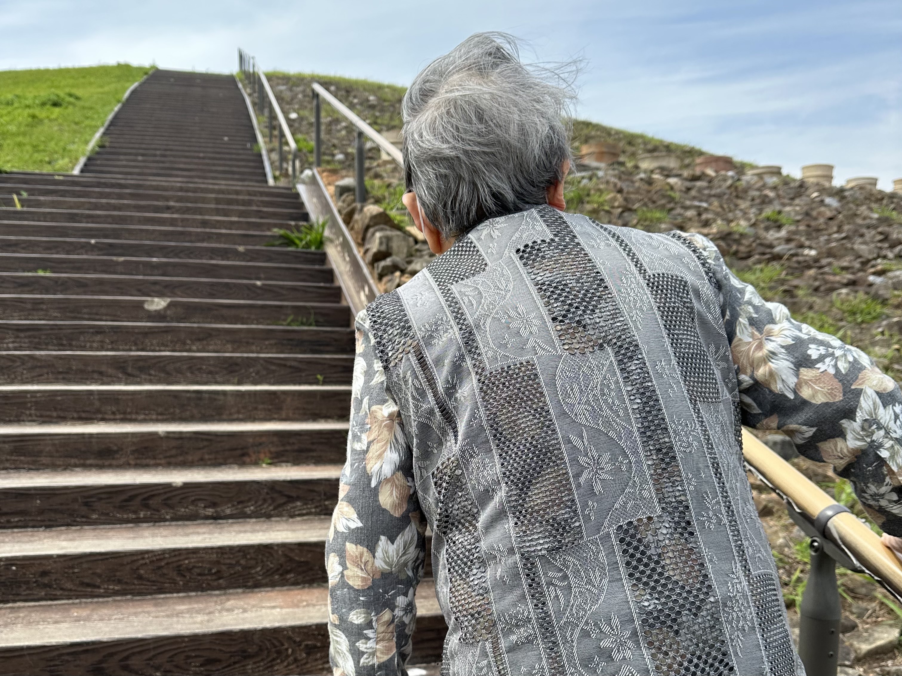 ここには結構登り甲斐のある階段がありまして、体力に自信がある利用者様だけゆっくりゆっくり登りました。
