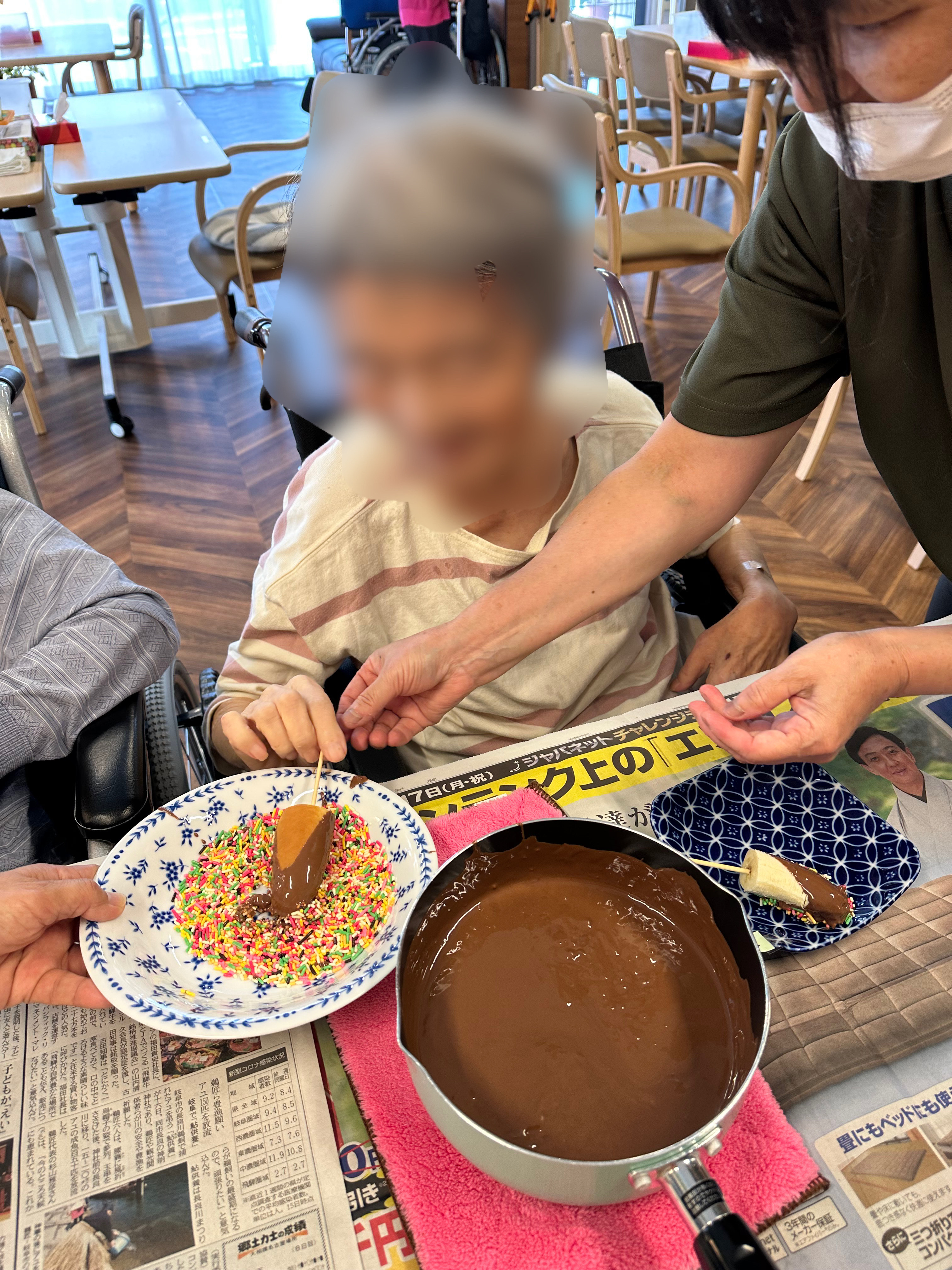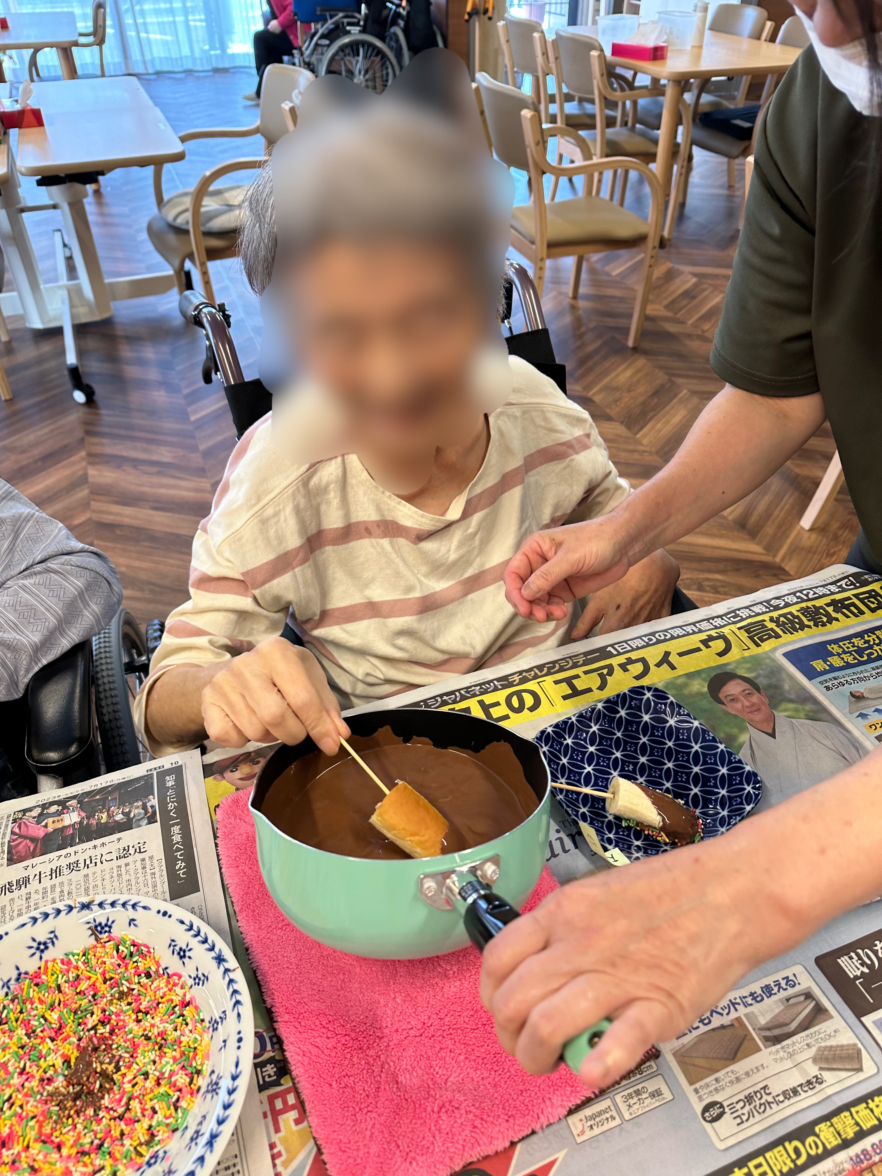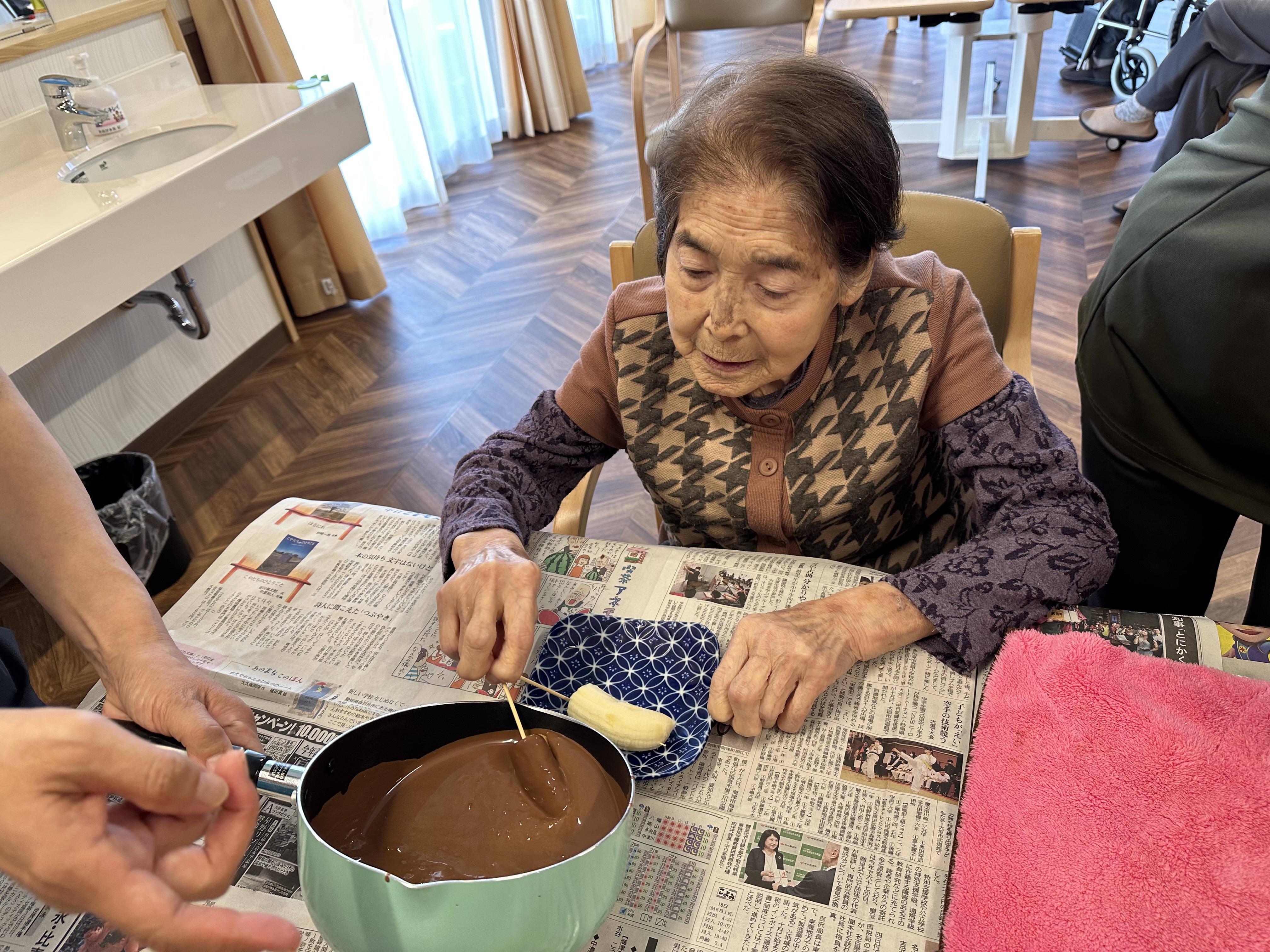 バナナやパンに、好きなだけチョコをつけてもらいます☺