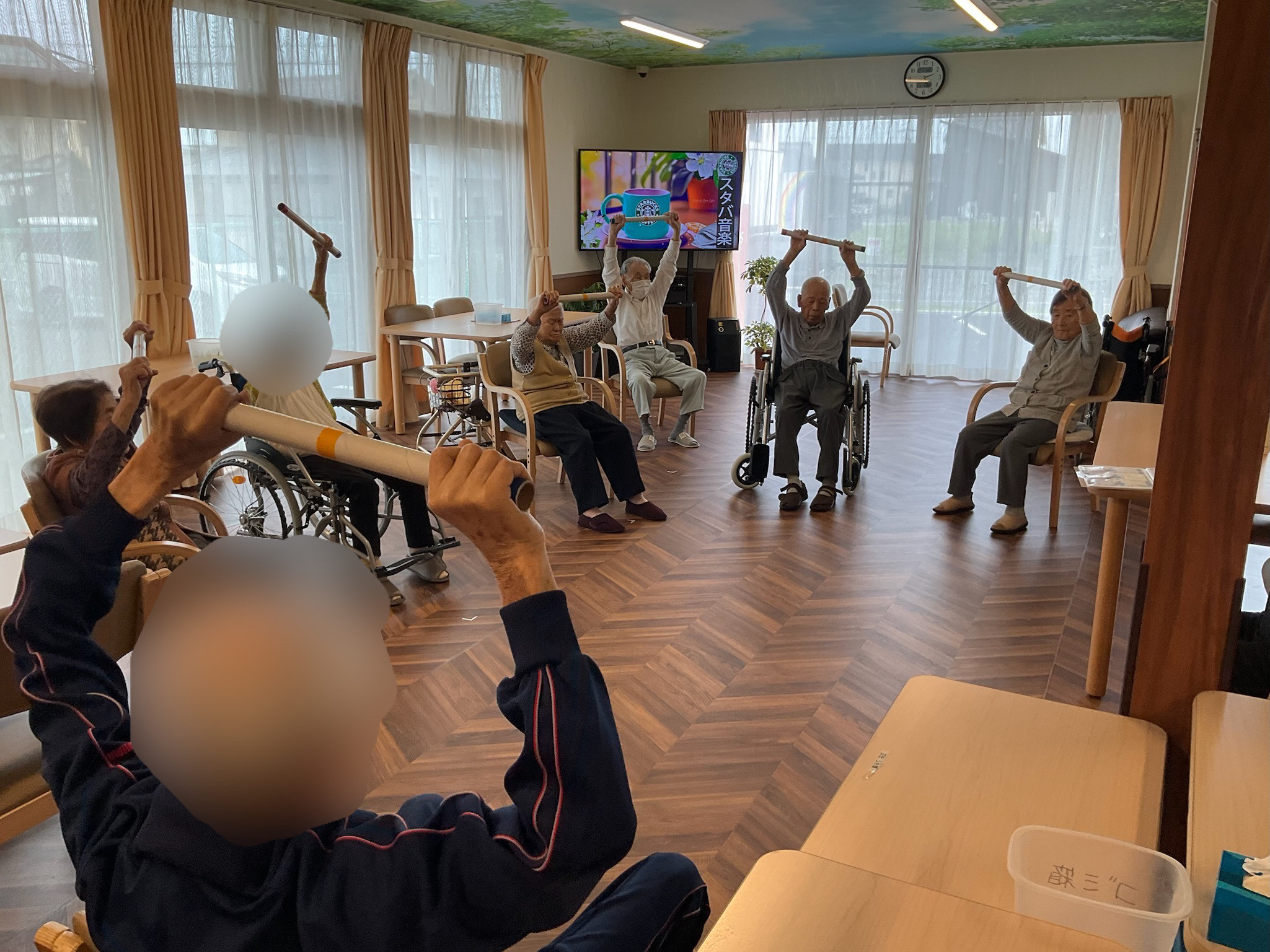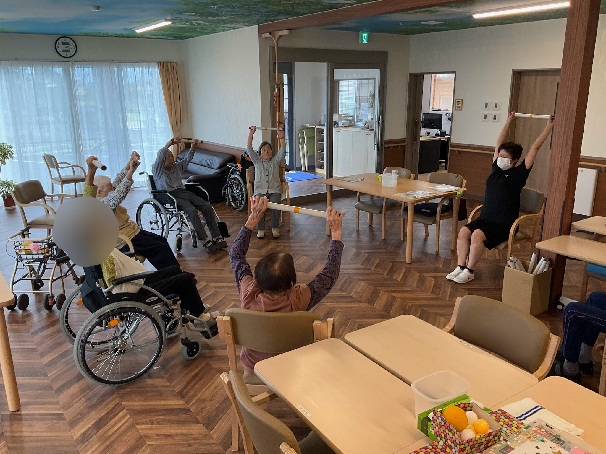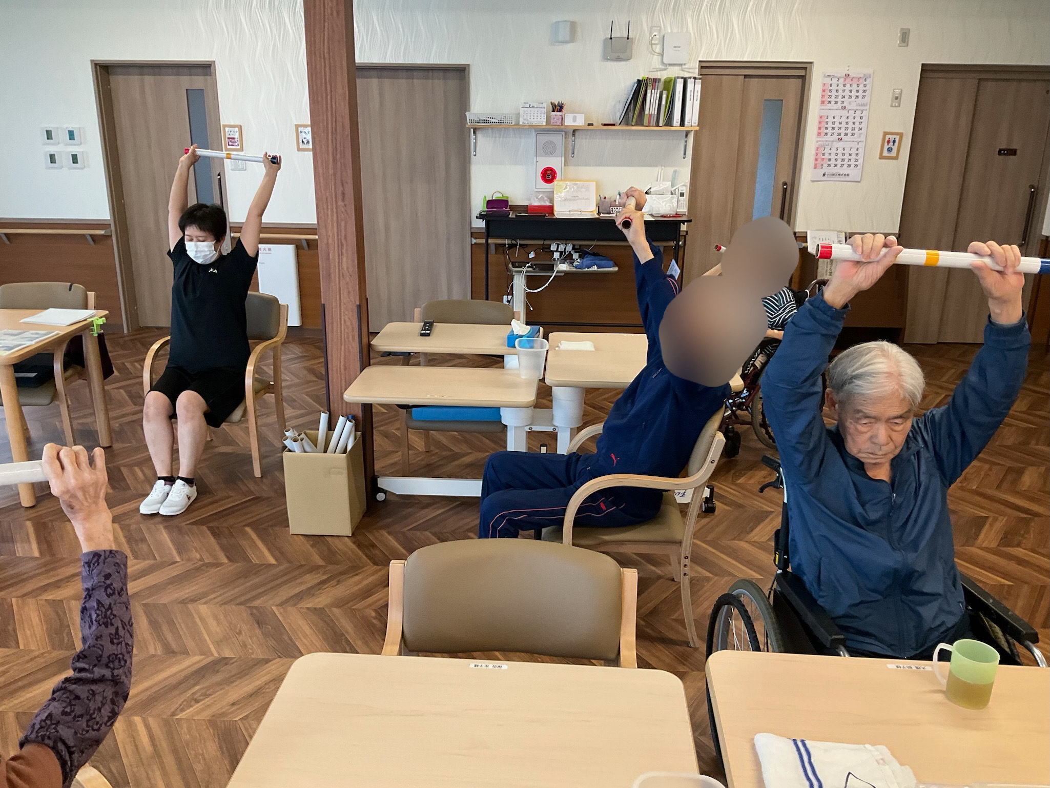 今月は、棒を使ったリハビリ体操を実施しています(#^.^#)