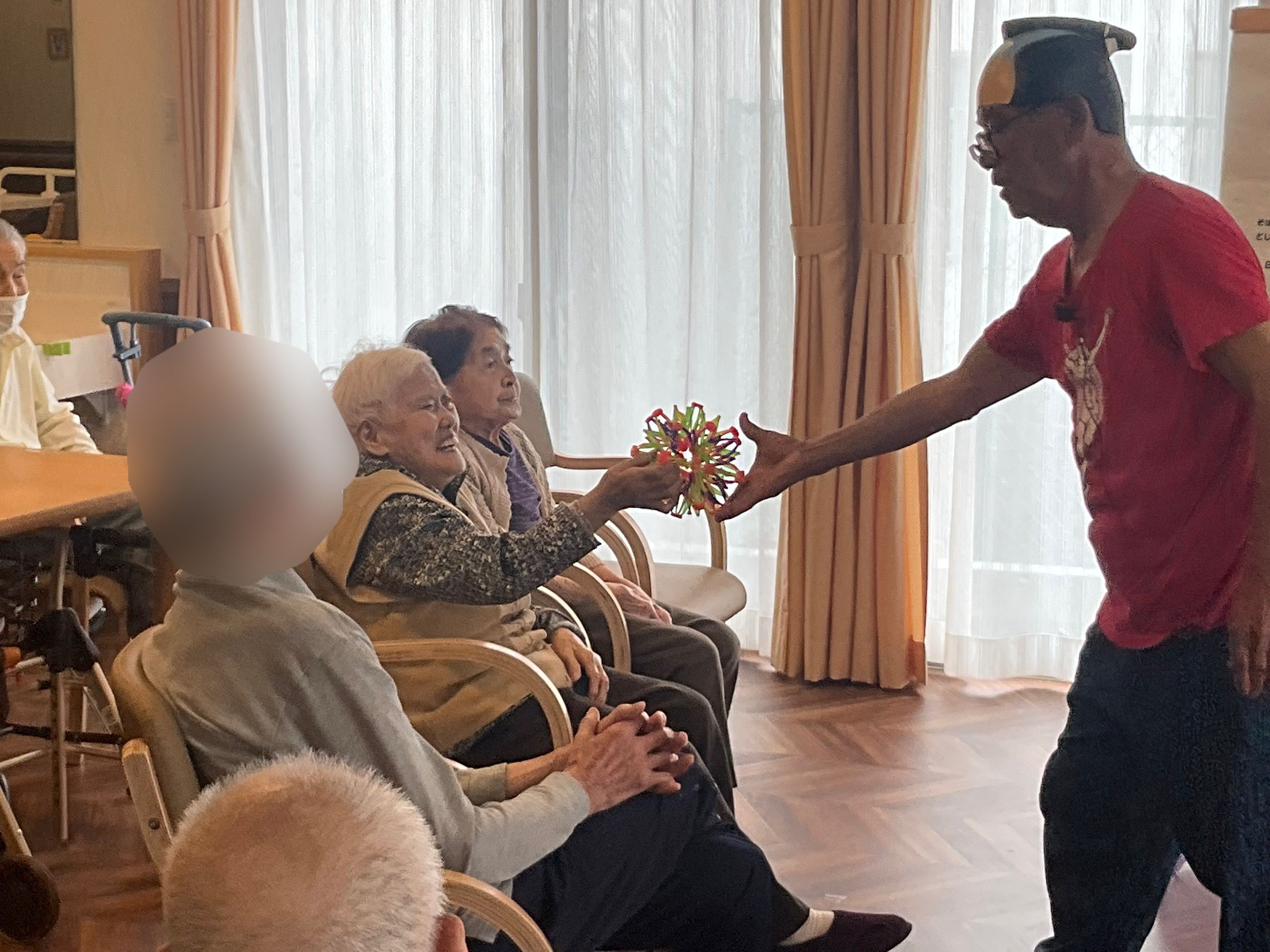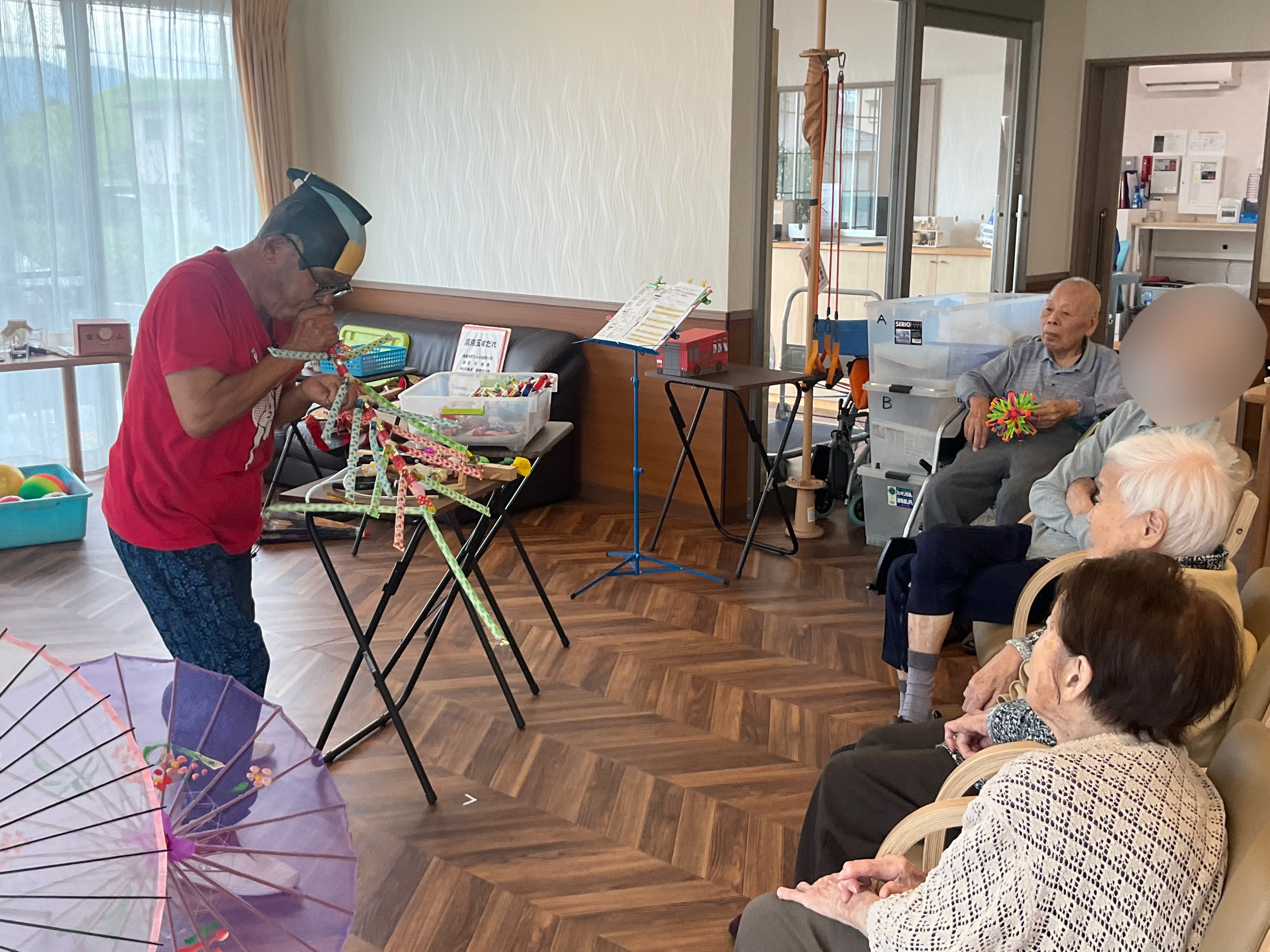 先日、いろんなレクリエーション企画を行っているボランティアの飯沼様がおおがき苑虹に来てくださいました(#^.^#)
