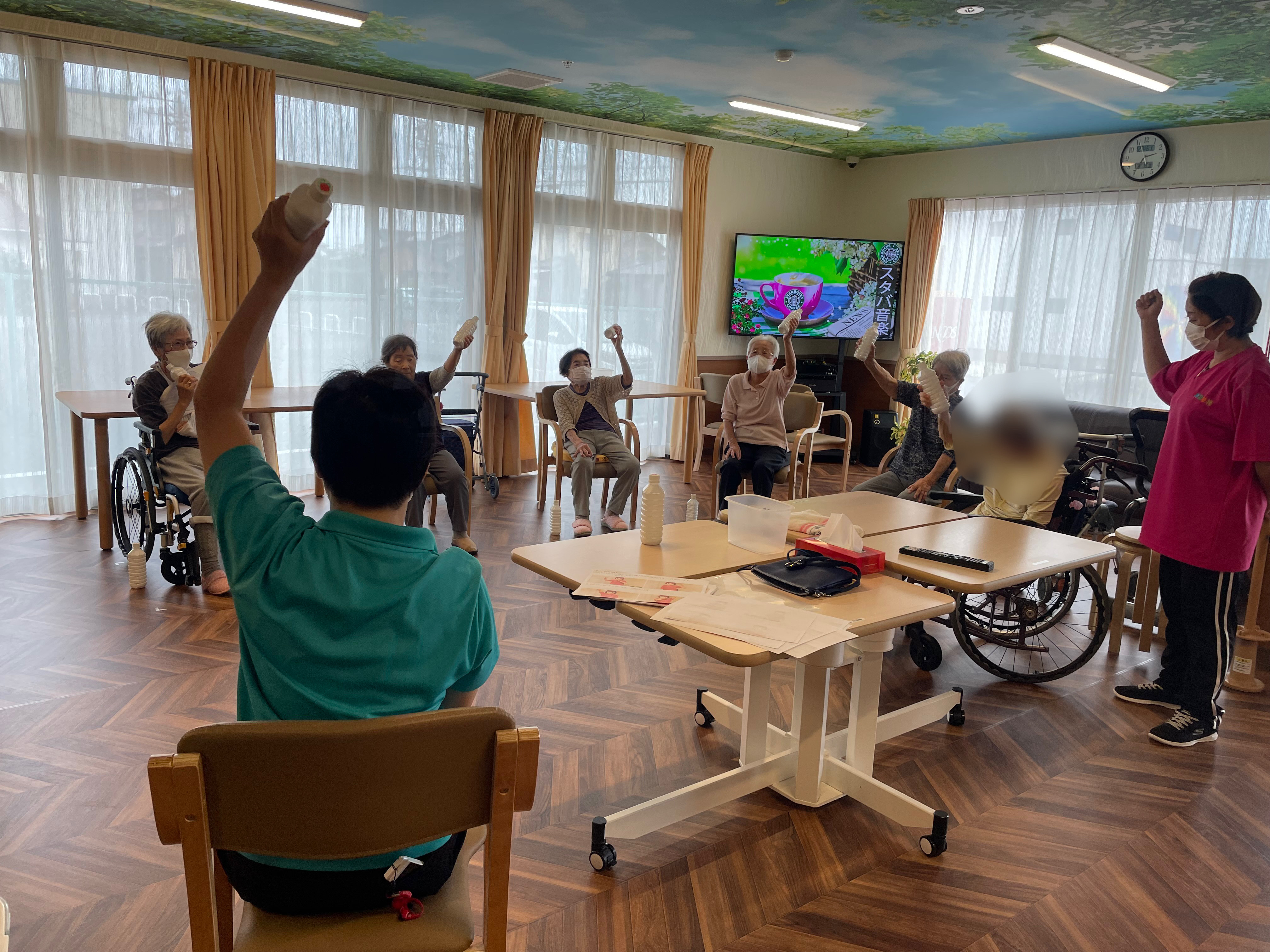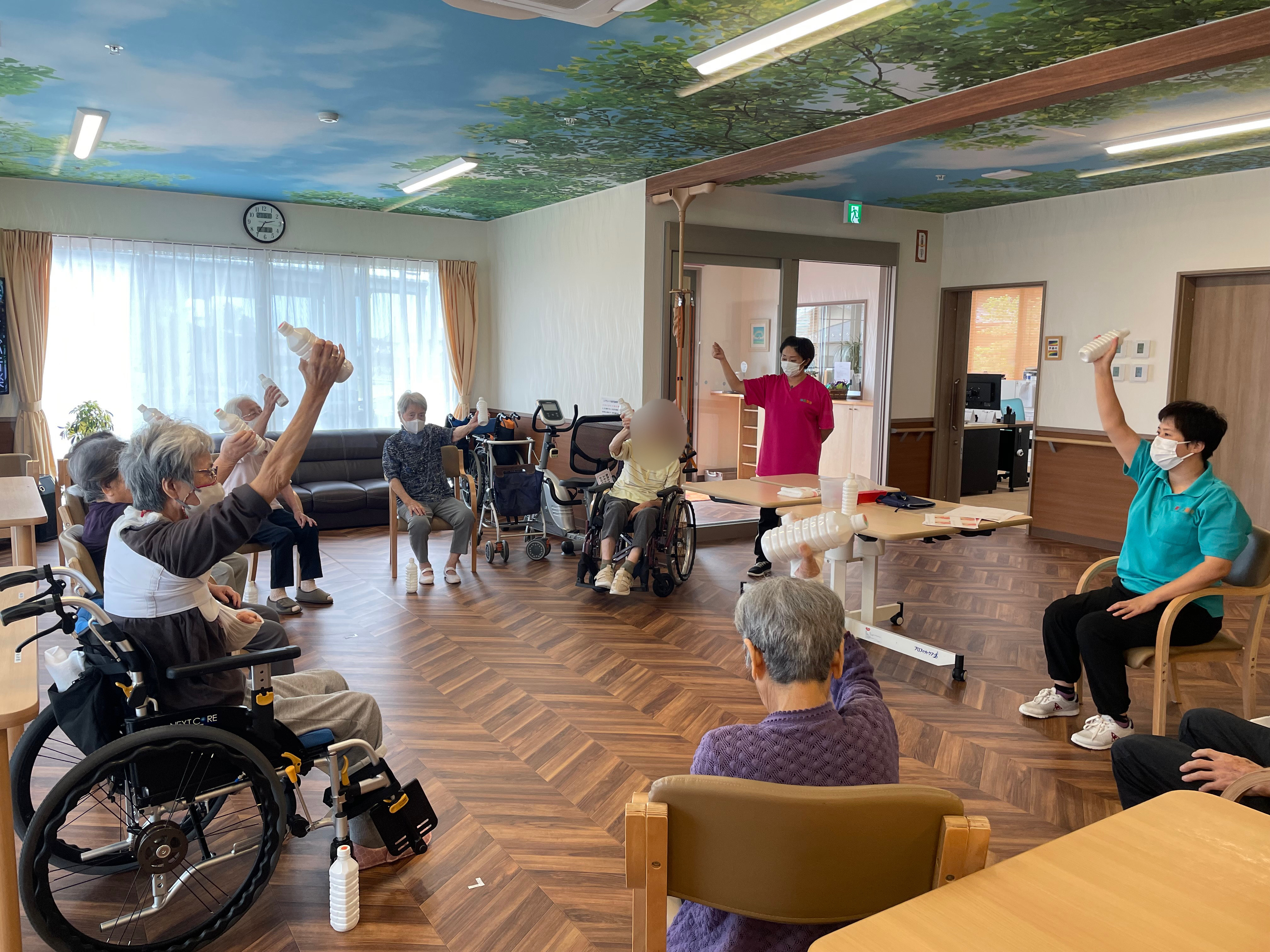 今月はペットボトルを使用した体操を行っています。