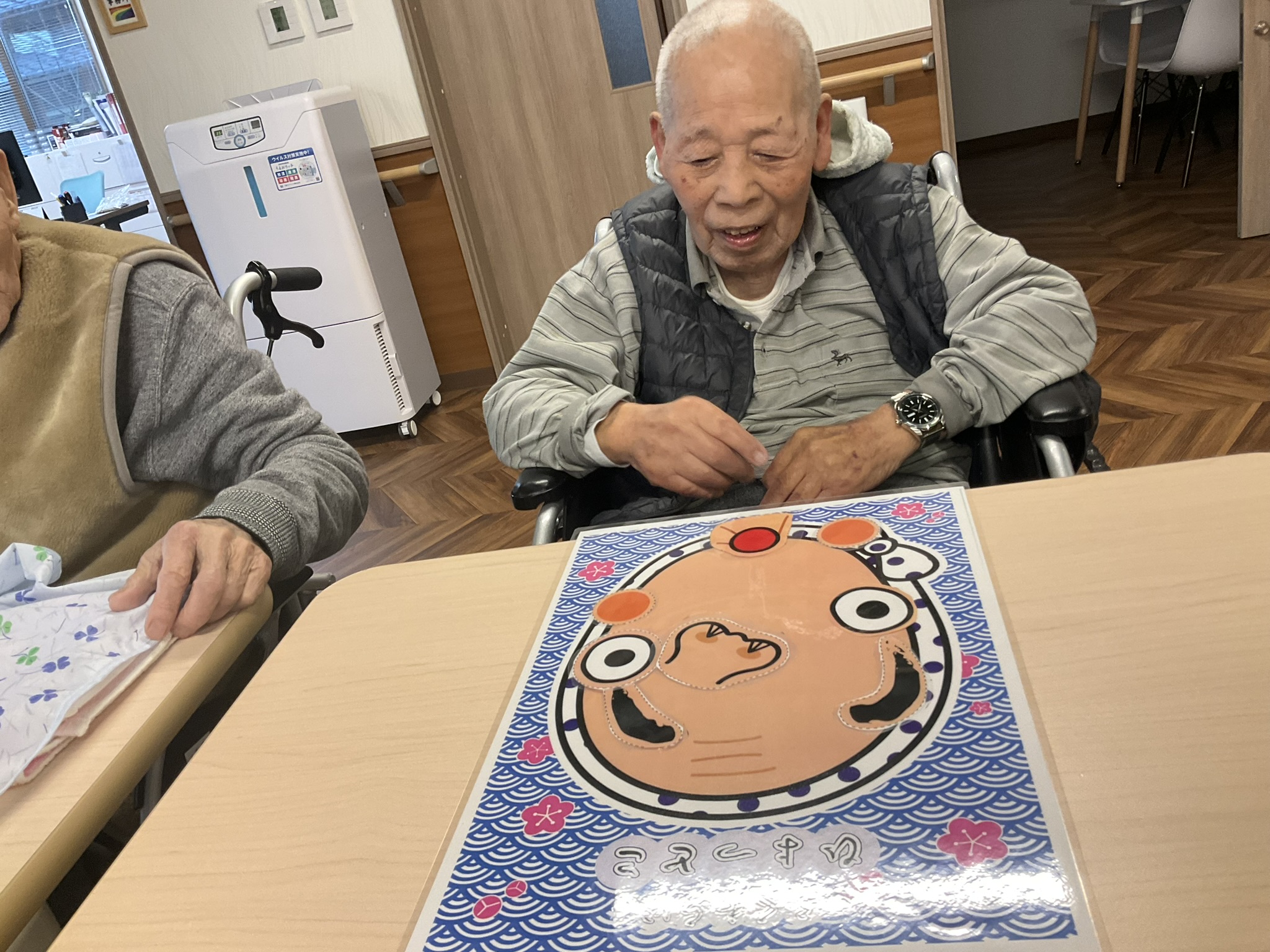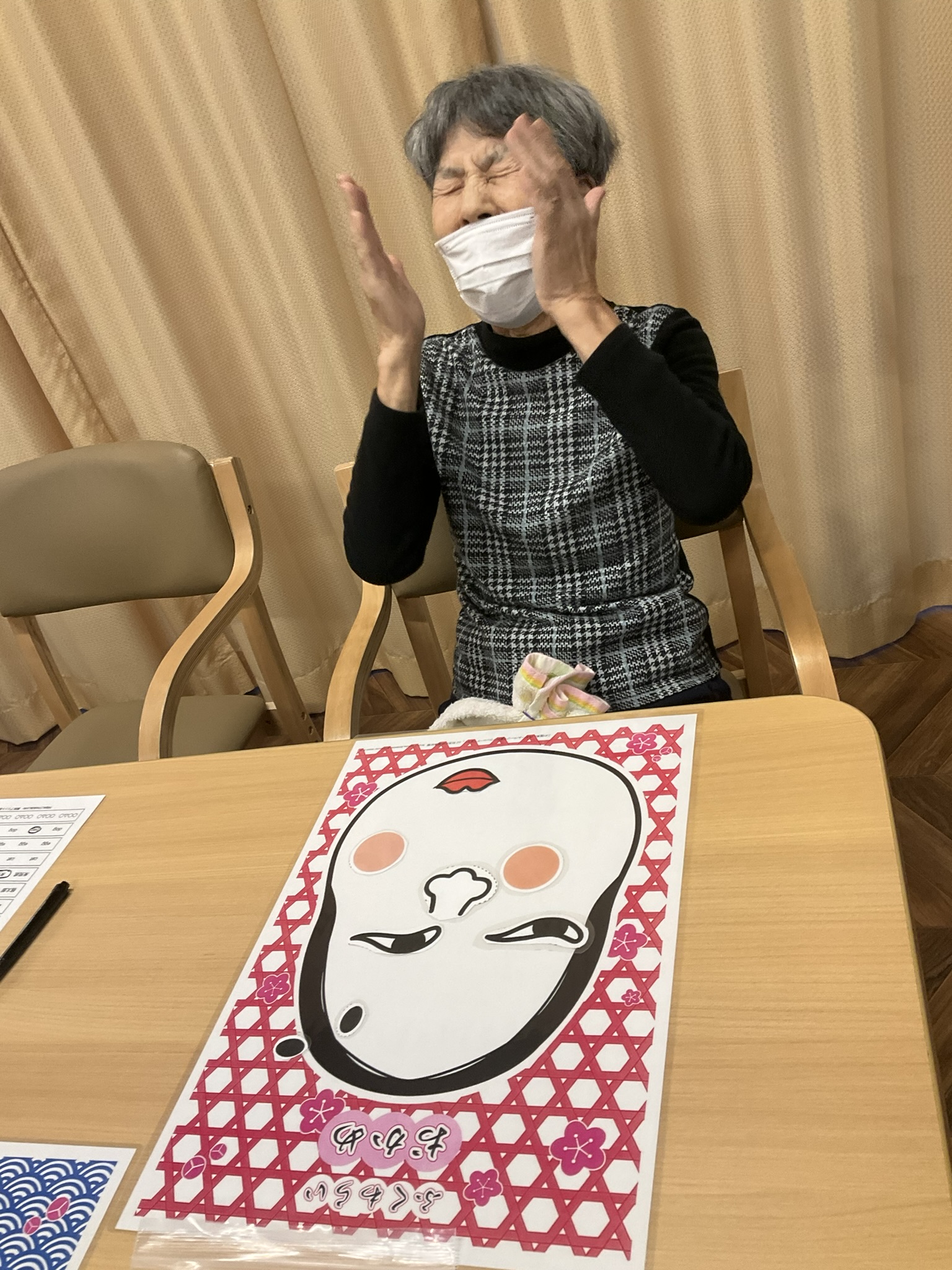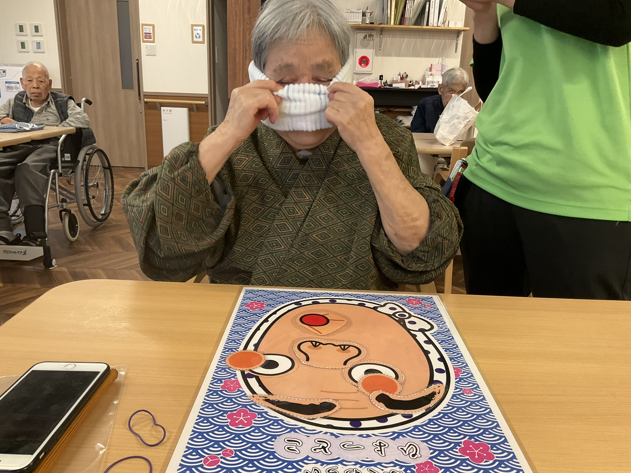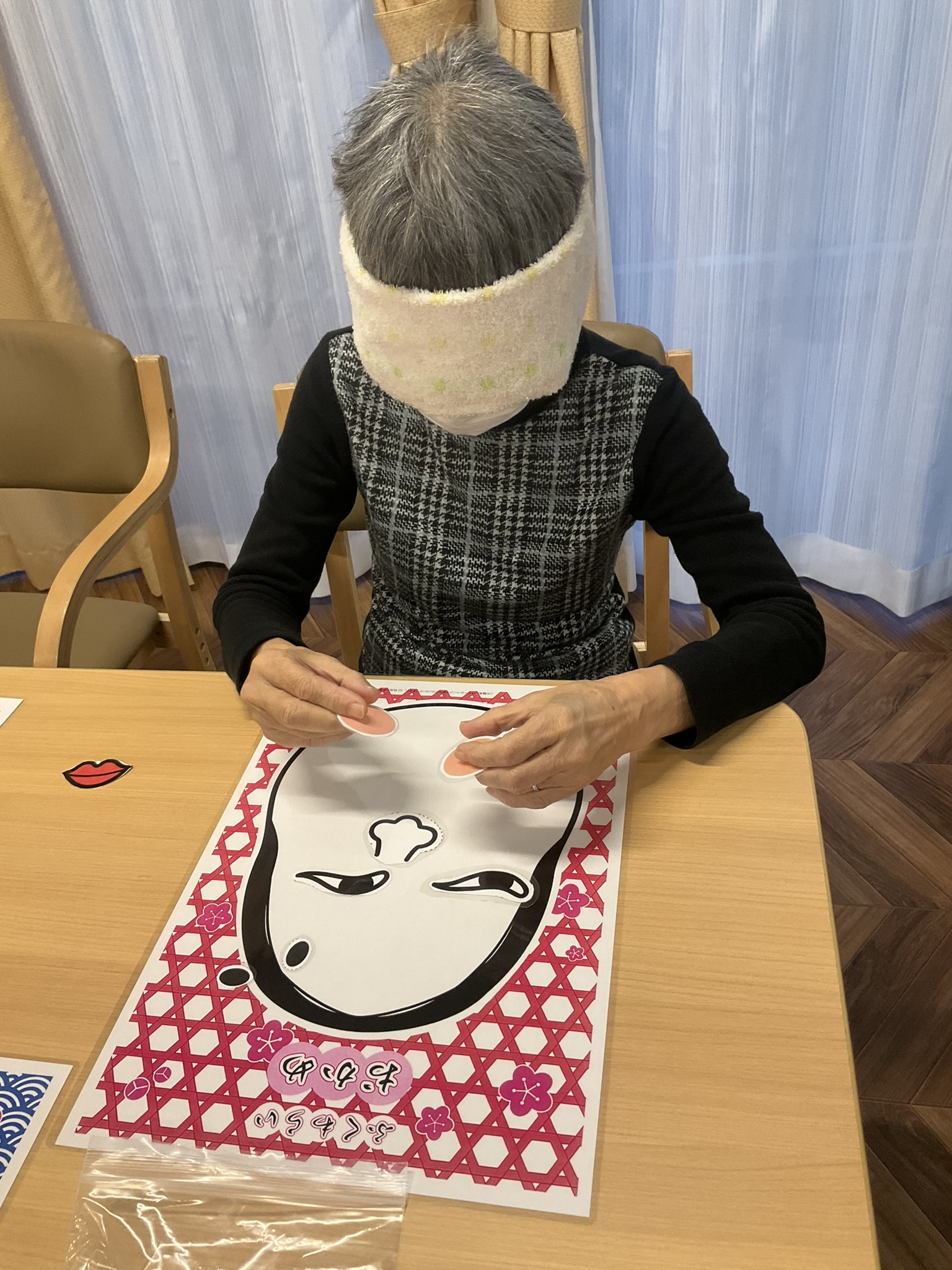 お正月といえば福笑いということで、今日は皆さんと福笑いをしました(^^♪