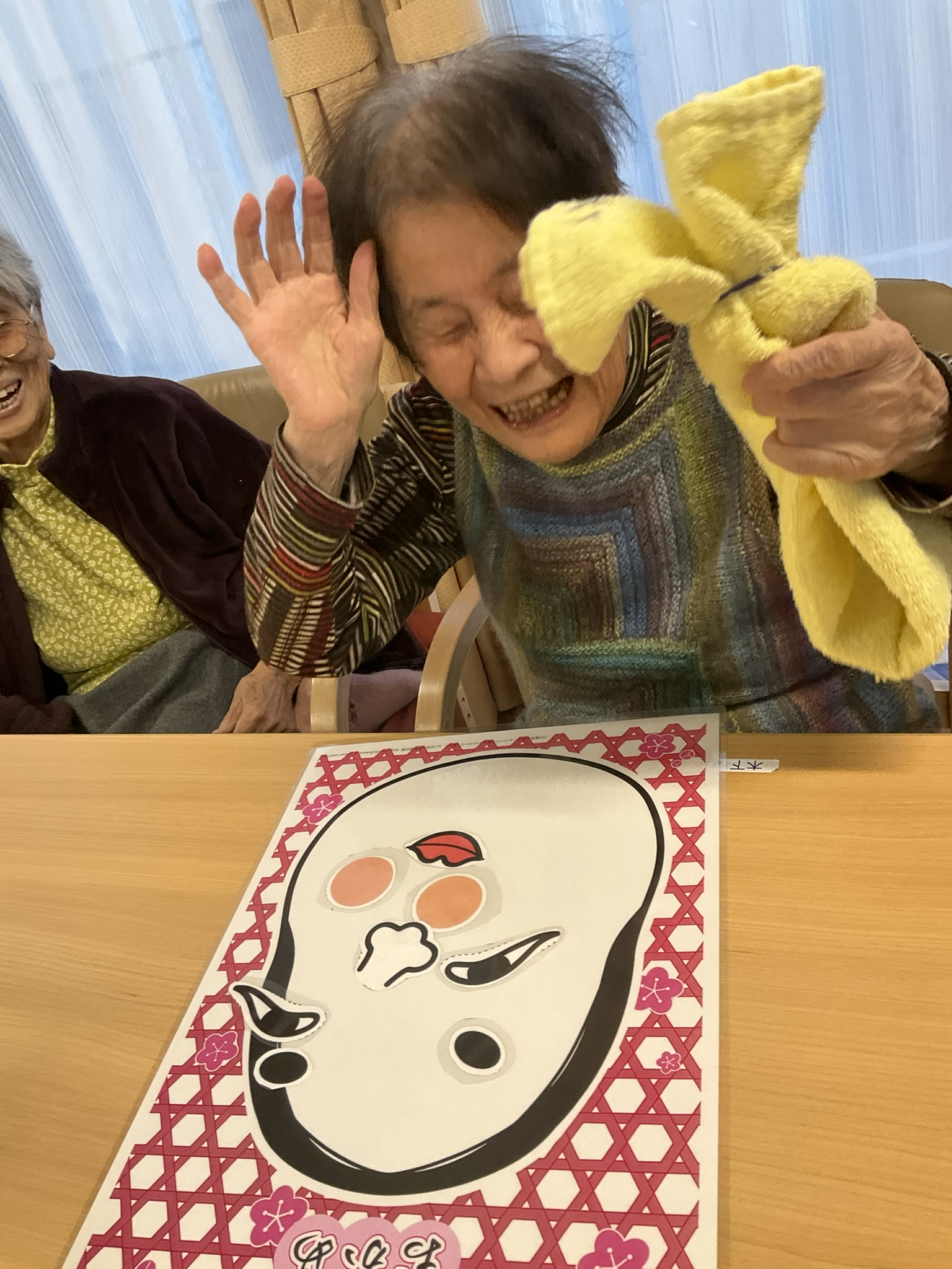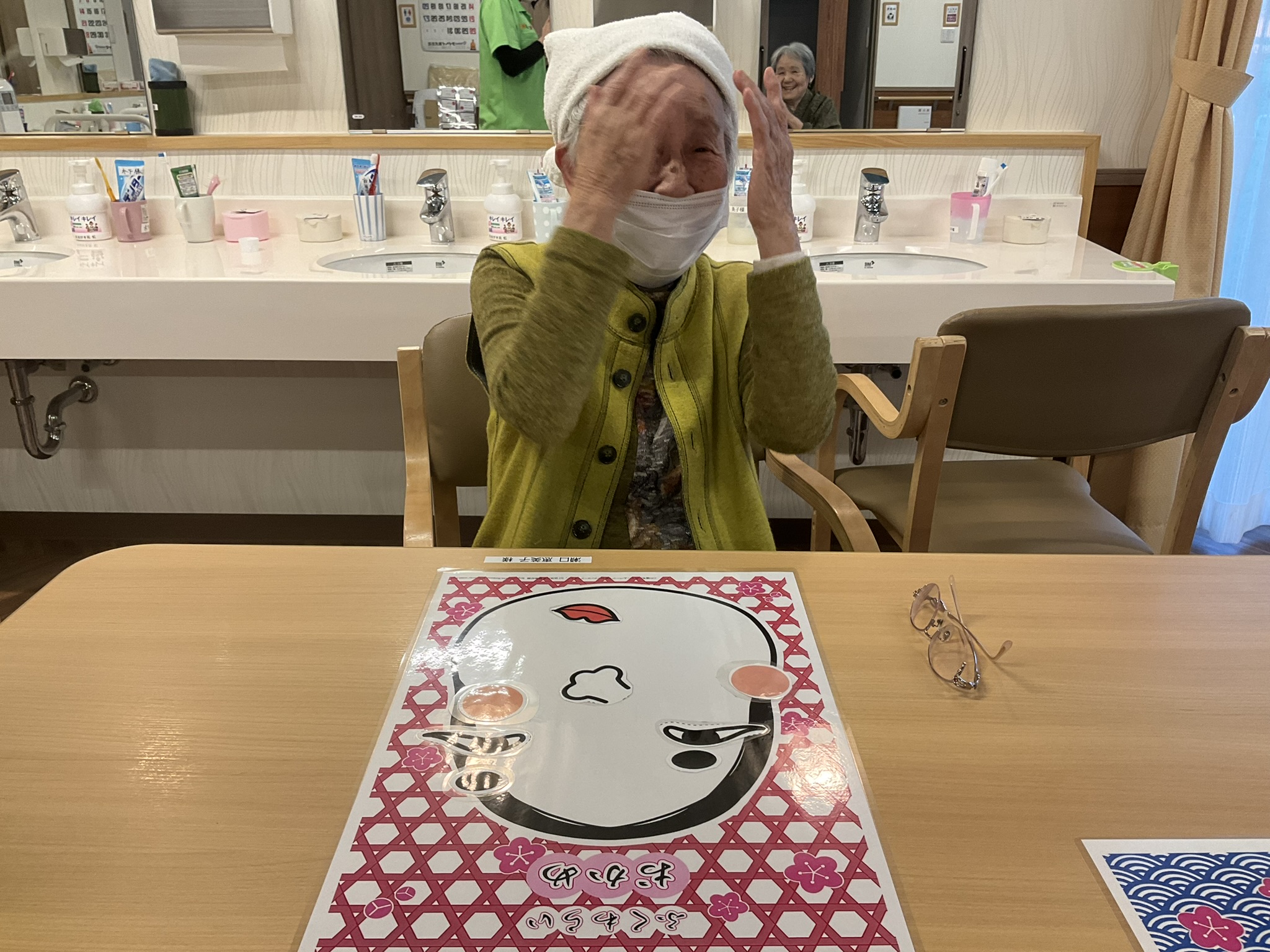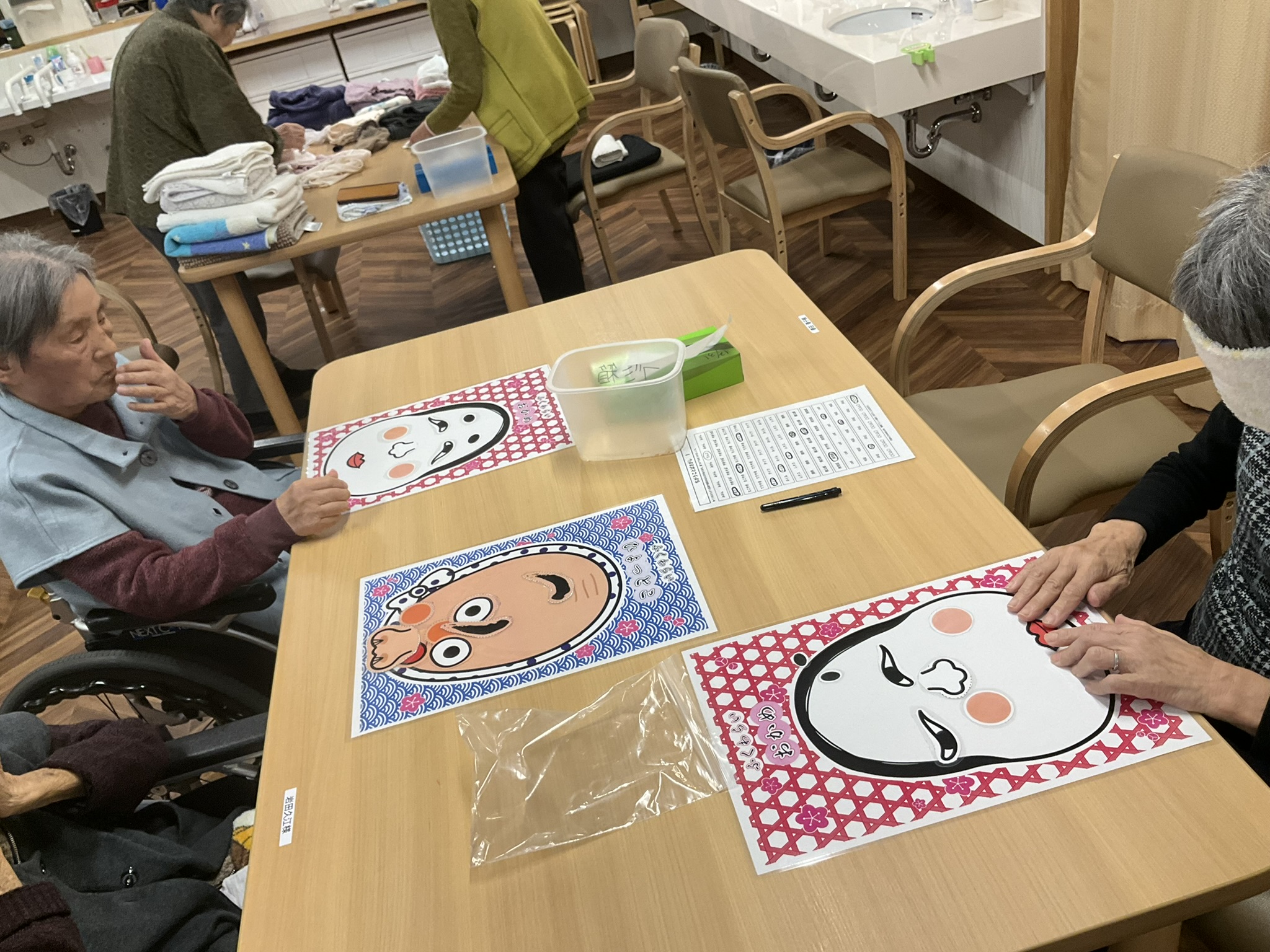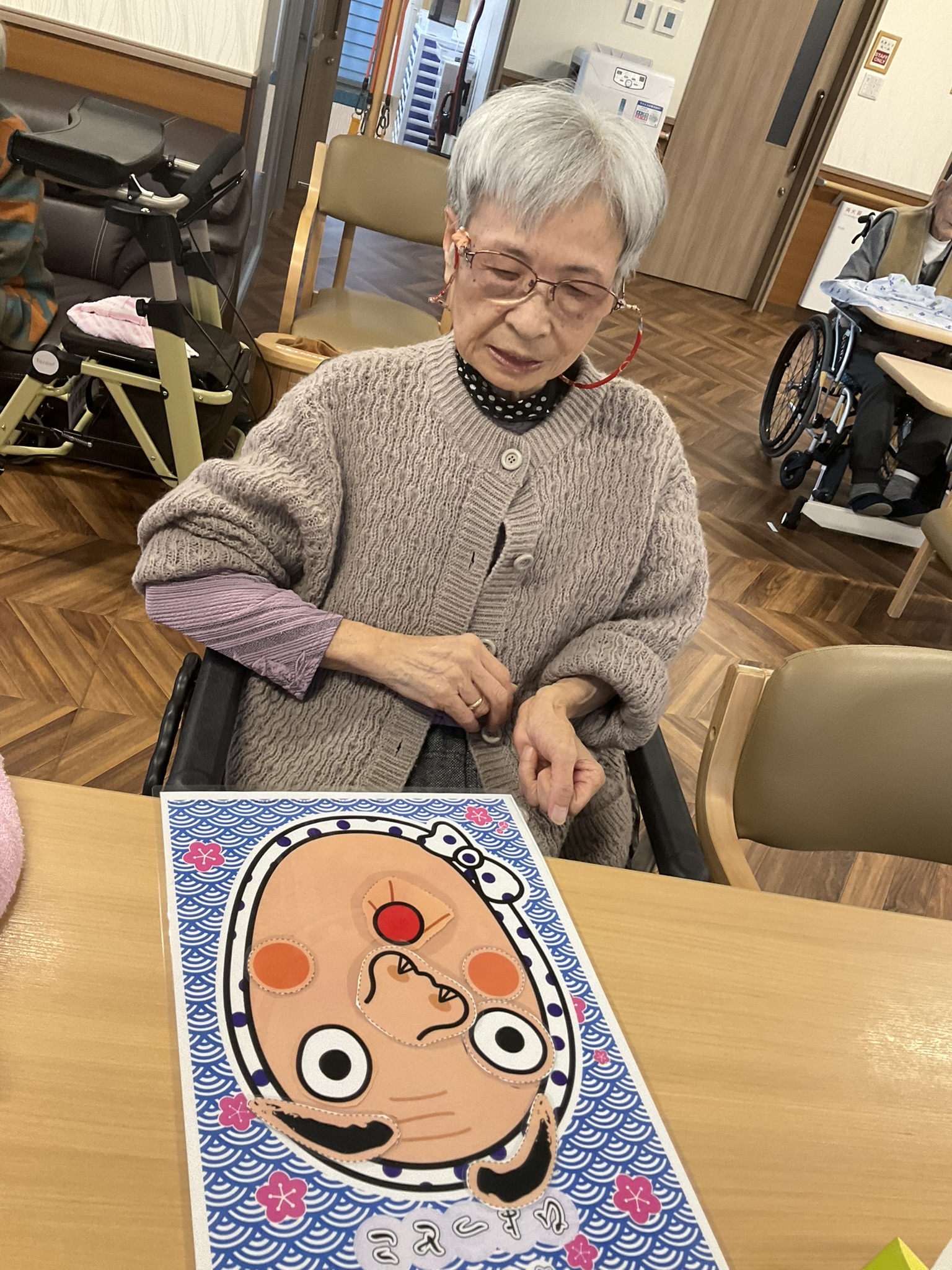 お正月といえば福笑いということで、今日は皆さんと福笑いをしました(^^♪