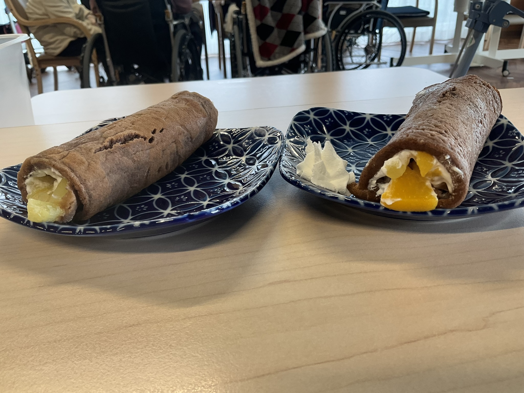 あとはホイップクリームとフルーツを皆さんに盛り付けて巻いてもらいます。