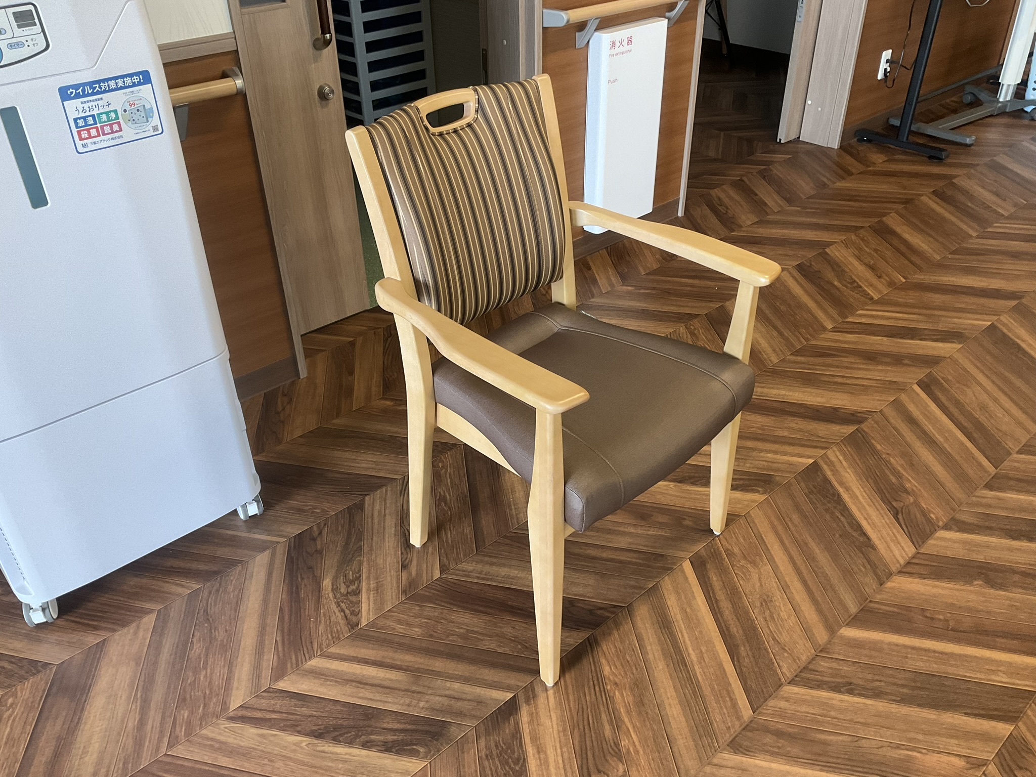 お出かけの際にも利用者様が座って履物の履き替えができるように玄関に一脚置いてありますので、ぜひ座りに来てください!