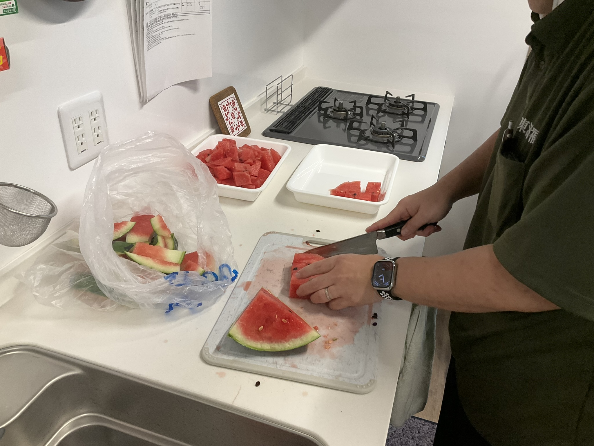 本日は、利用者様の為に社長が買ってくれたスイカを提供させていただきました!