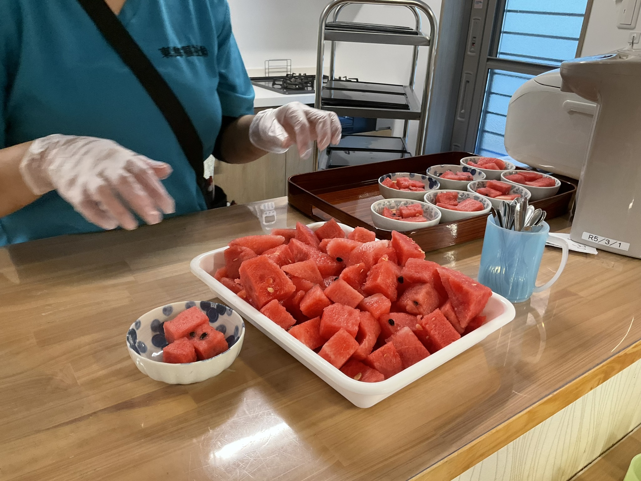 果物はお食事の際によく出ますが、スイカはさすがに出ないのでとても喜んでいただけました☆彡