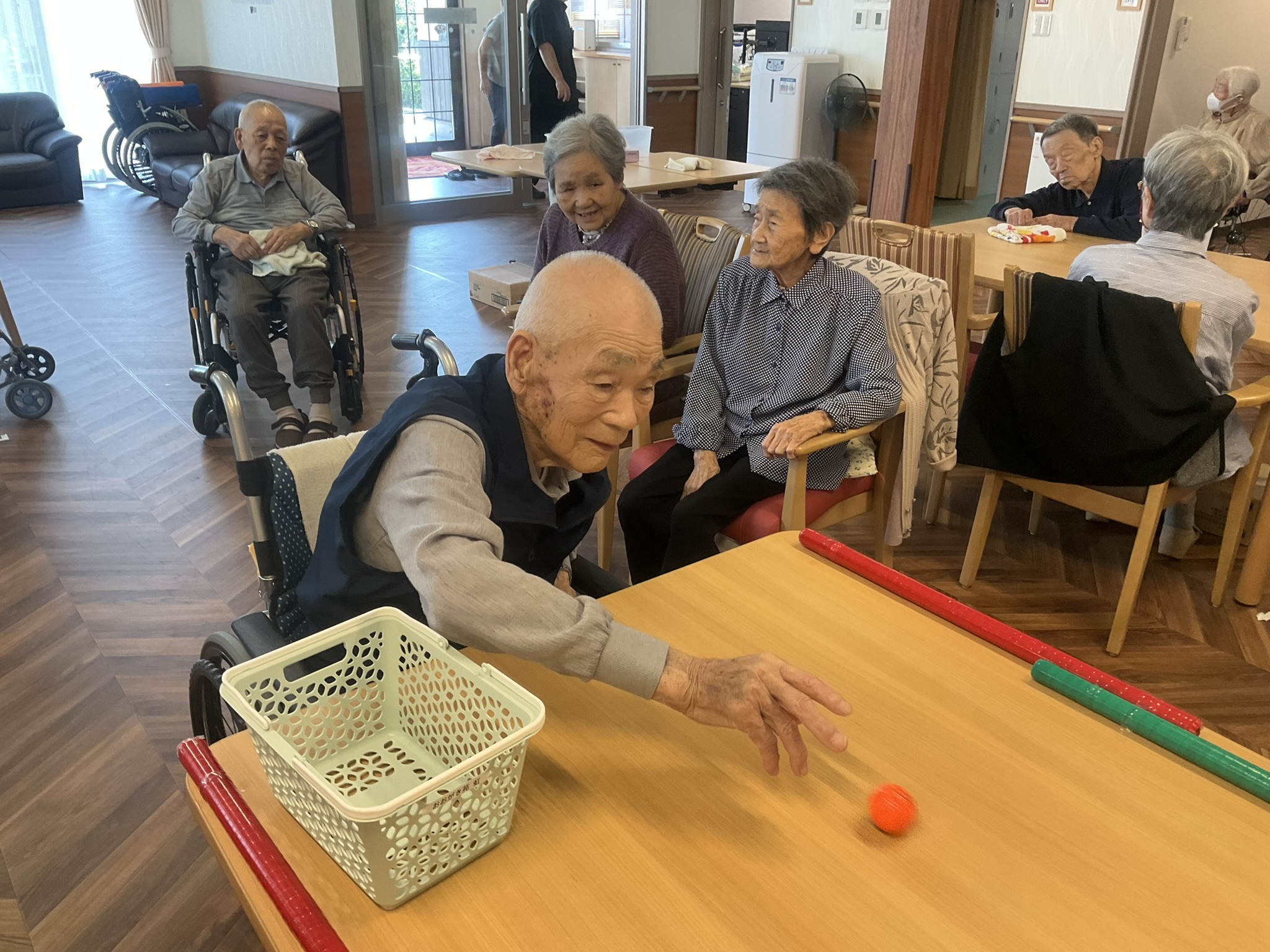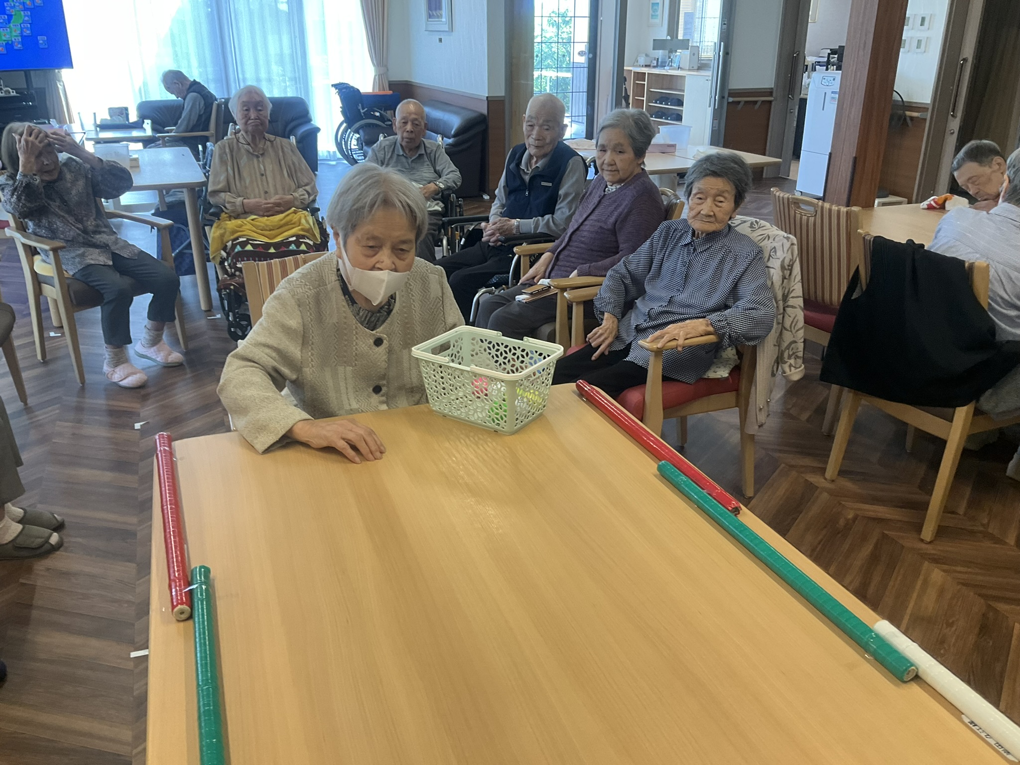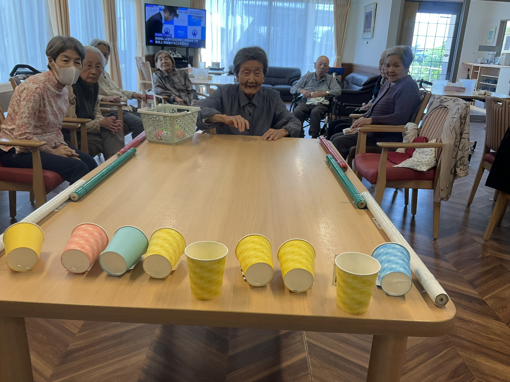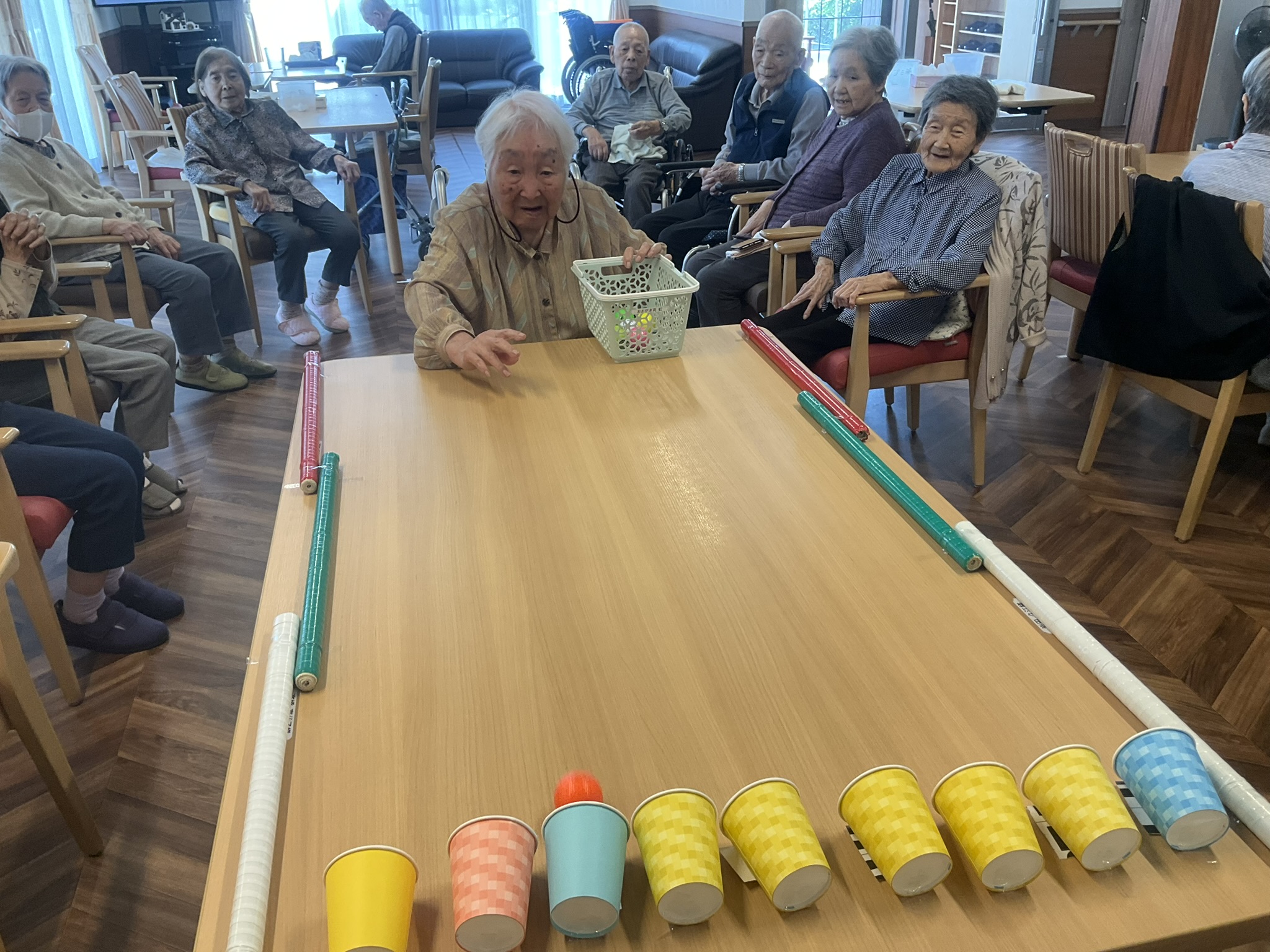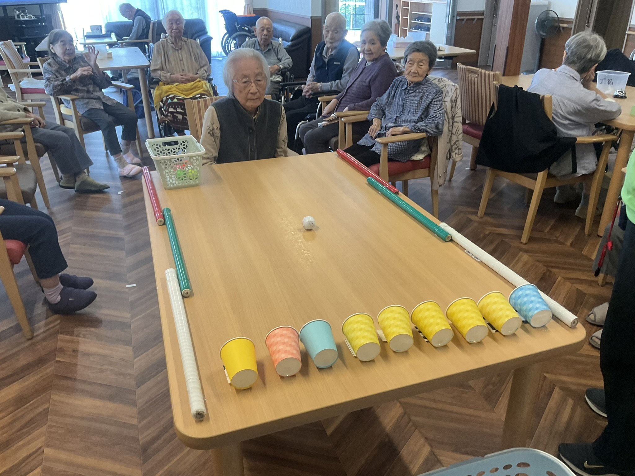 本日はテーブル上で玉入れを実施しました!