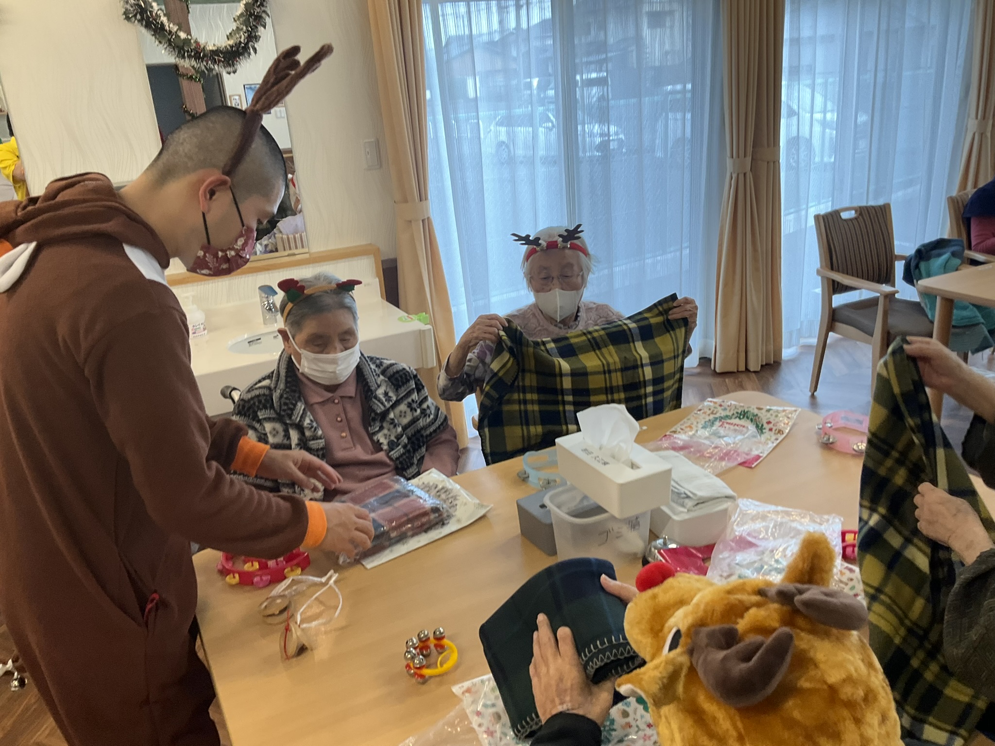 利用者の皆様にひざ掛けをプレゼントさせていただきました!