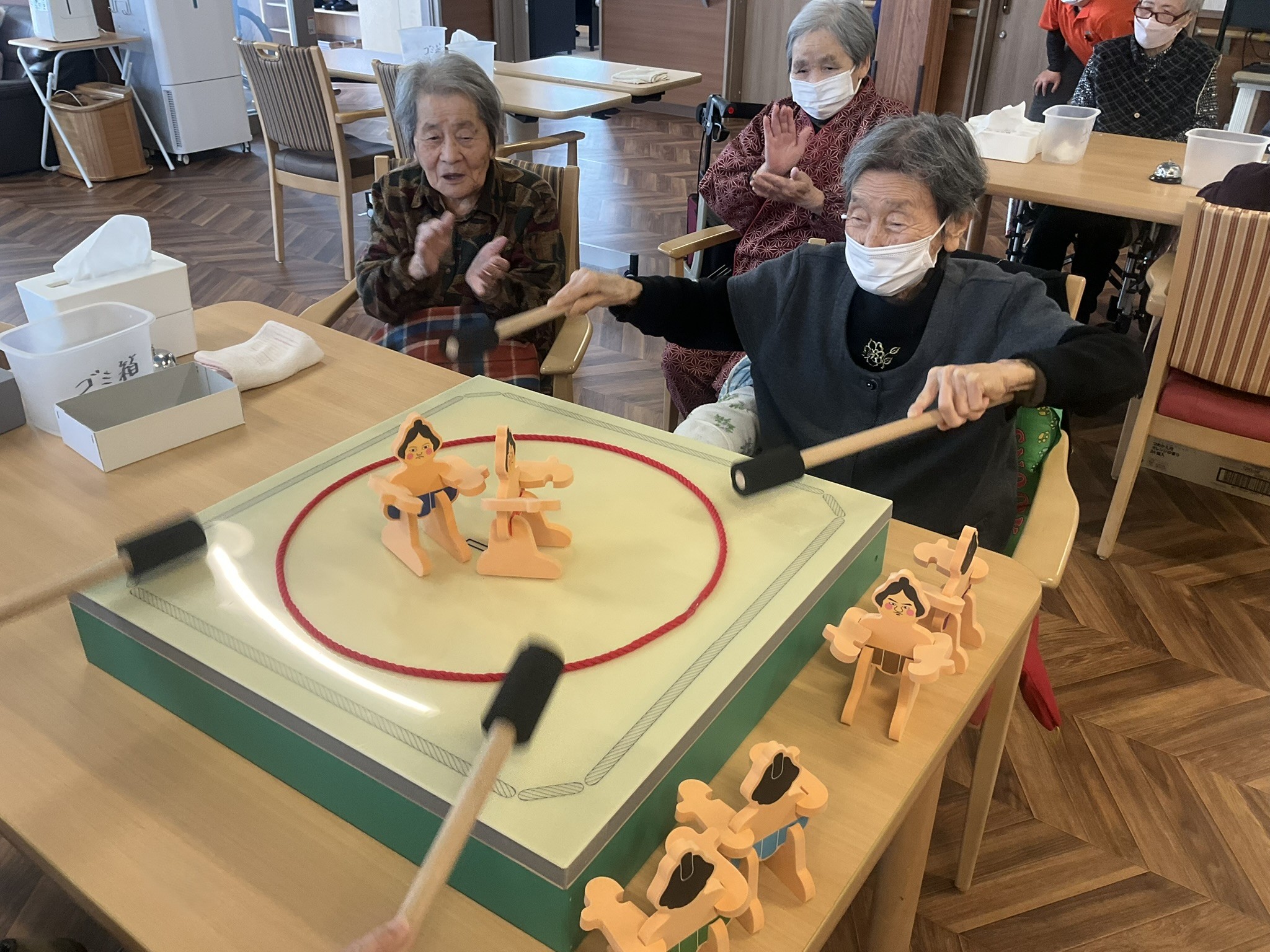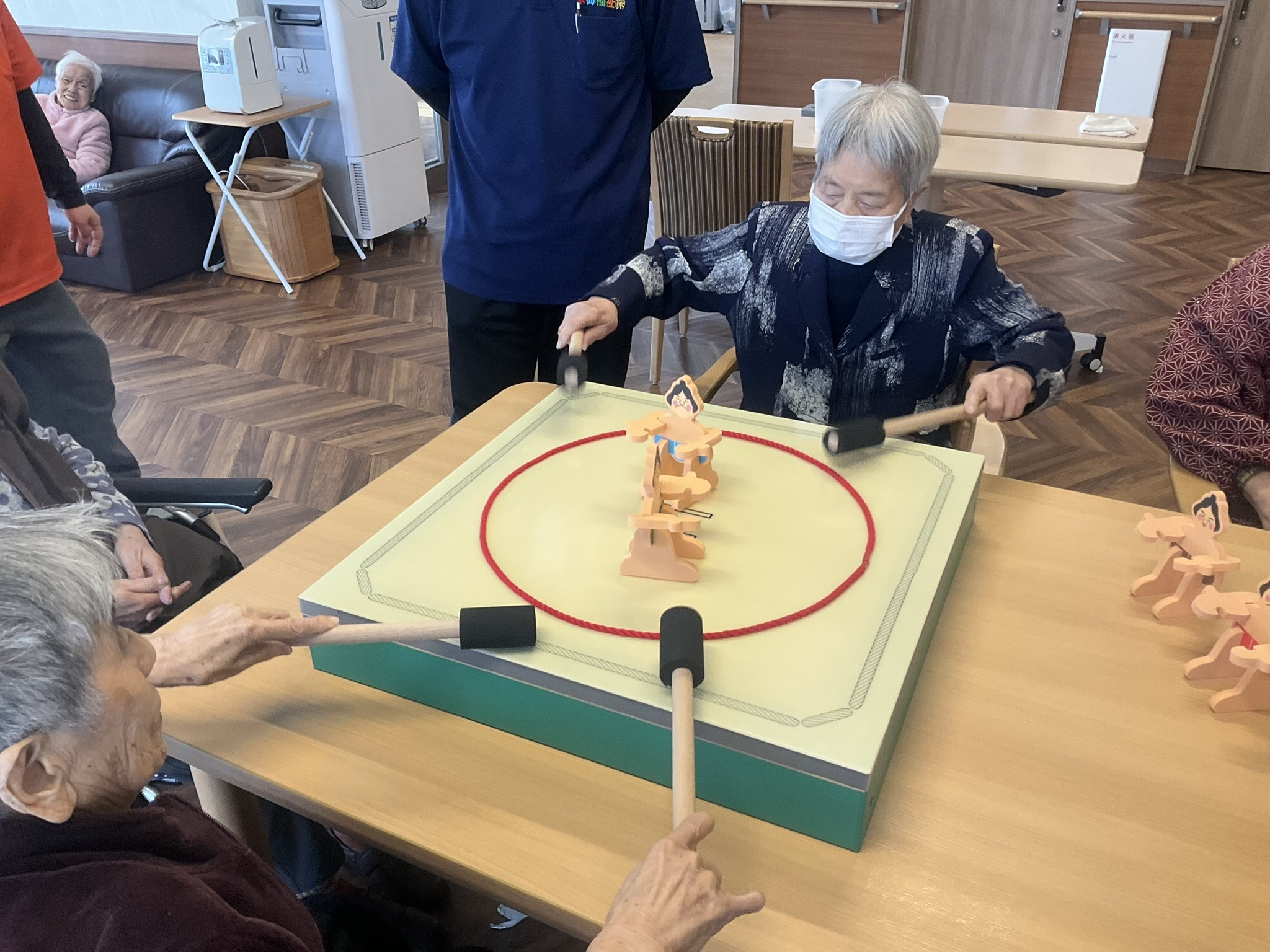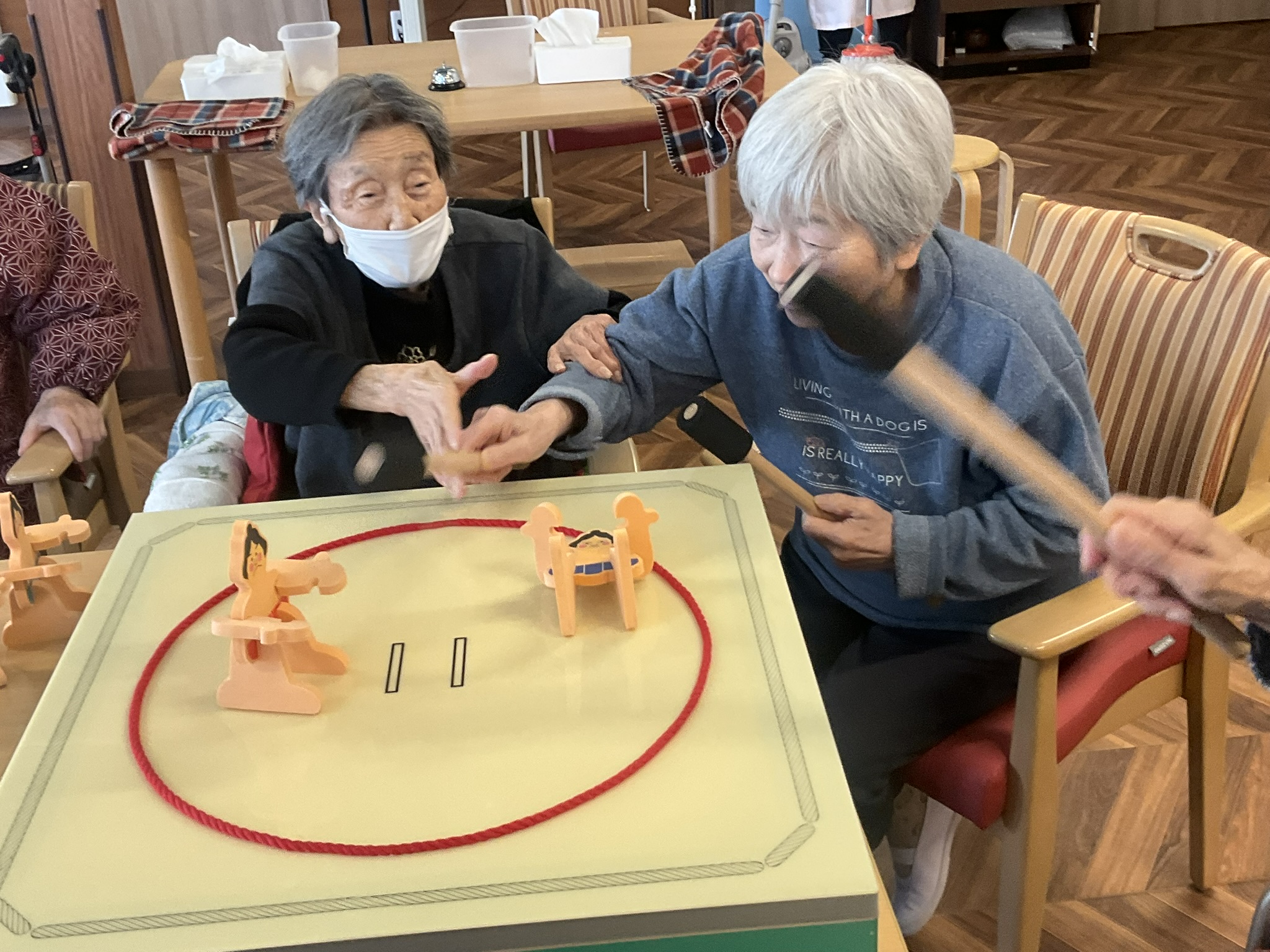 あまり強く叩くと自分の力士が倒れてしまうので力加減が難しかったですが、楽しく実施できましたよ(^_-)-☆