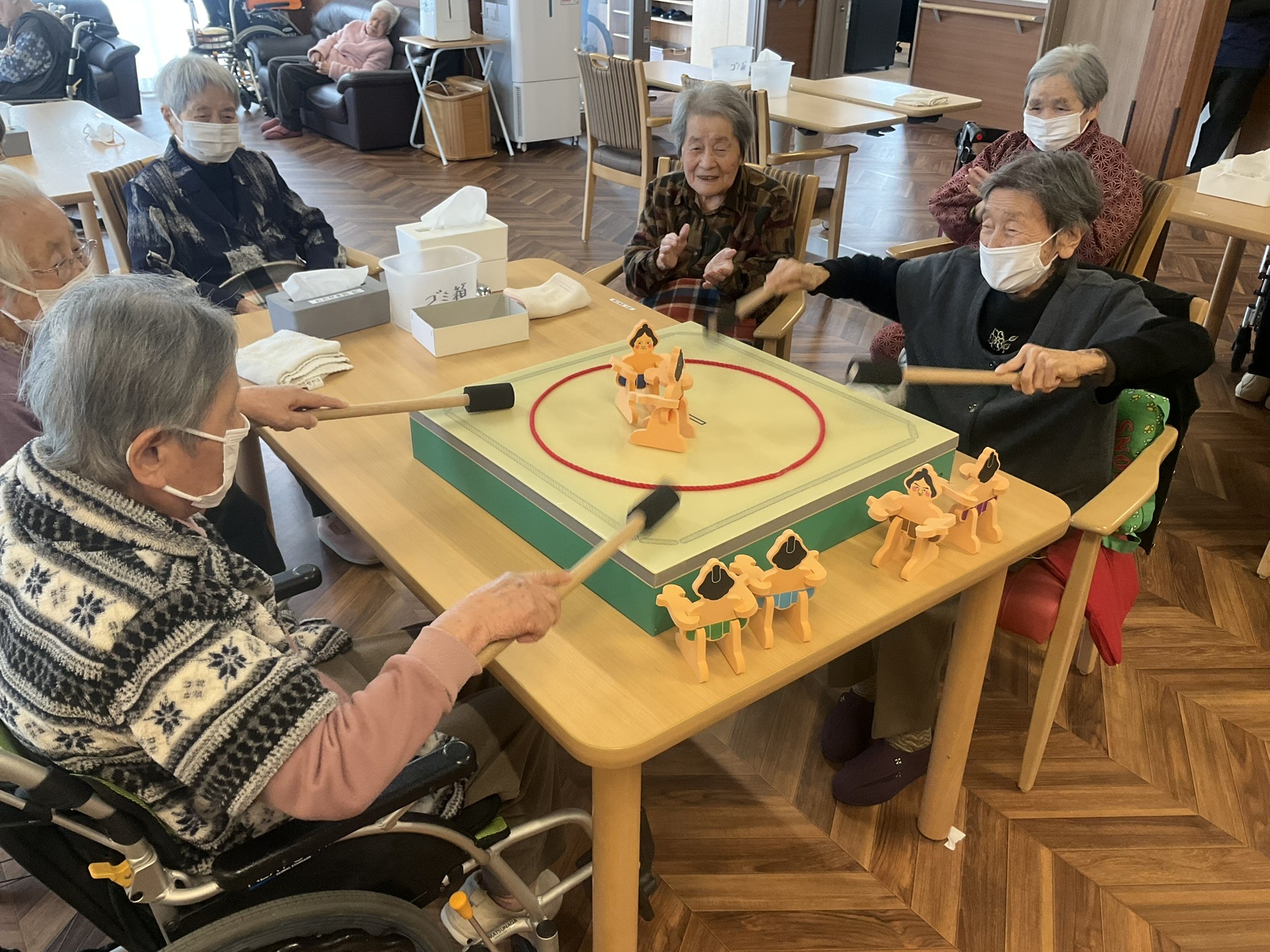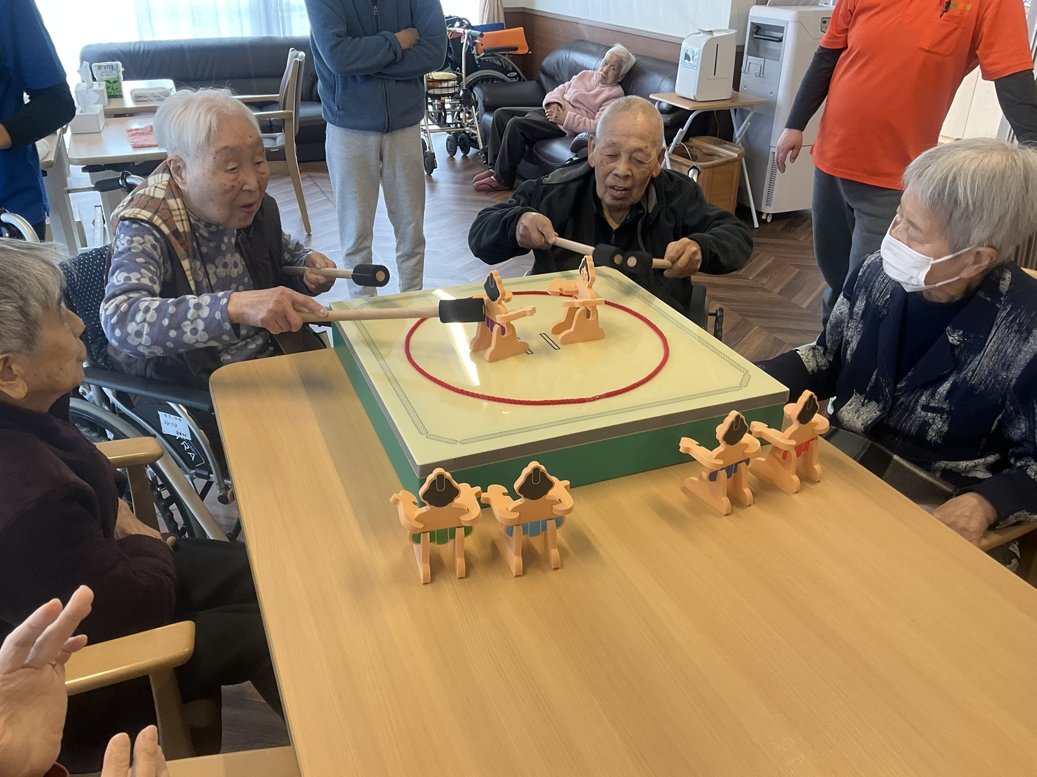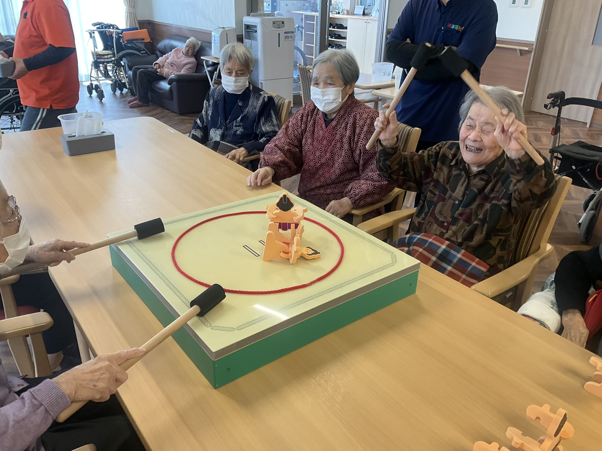 あまり強く叩くと自分の力士が倒れてしまうので力加減が難しかったですが、楽しく実施できましたよ(^_-)-☆