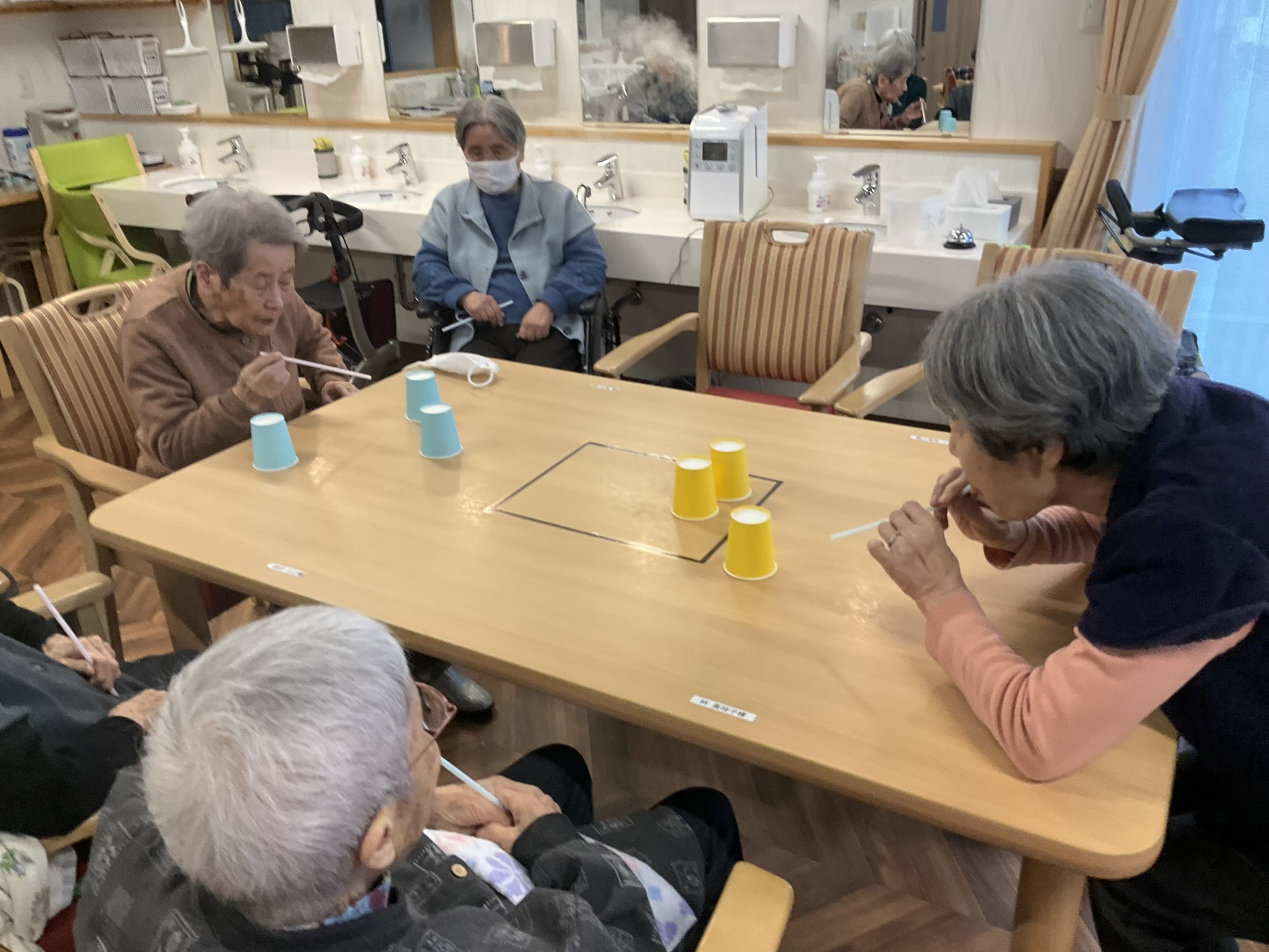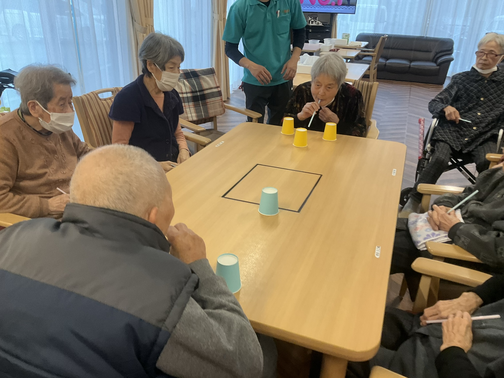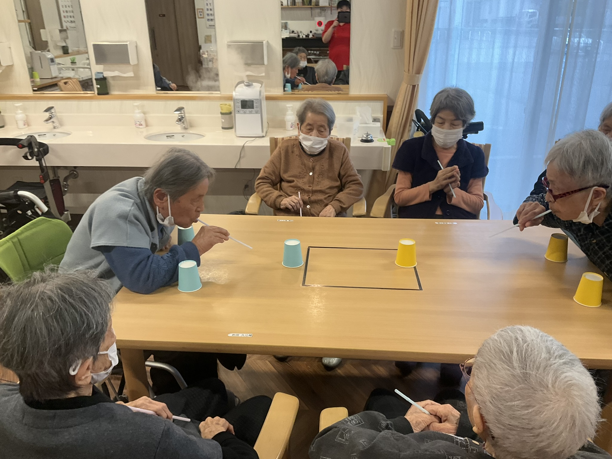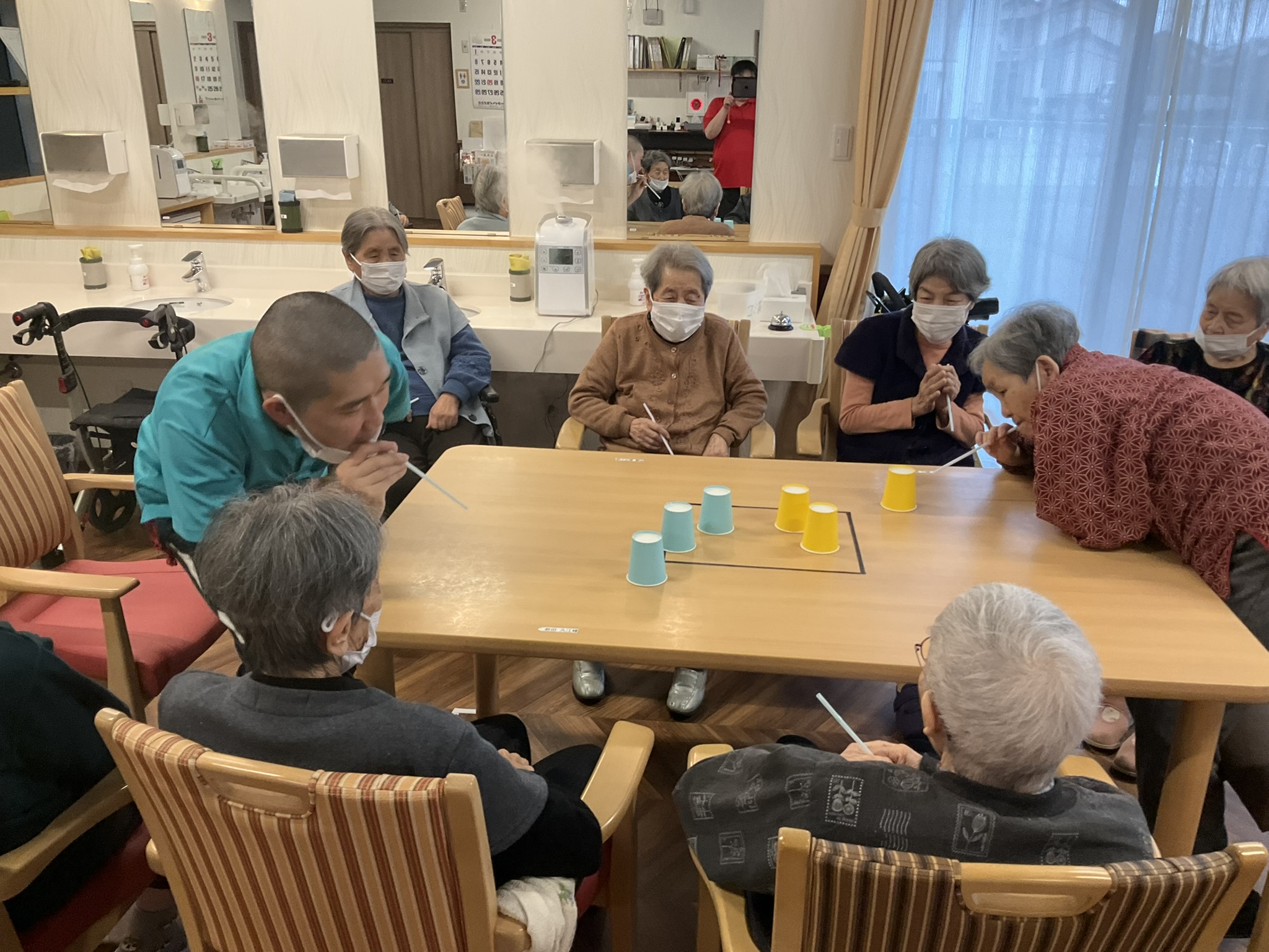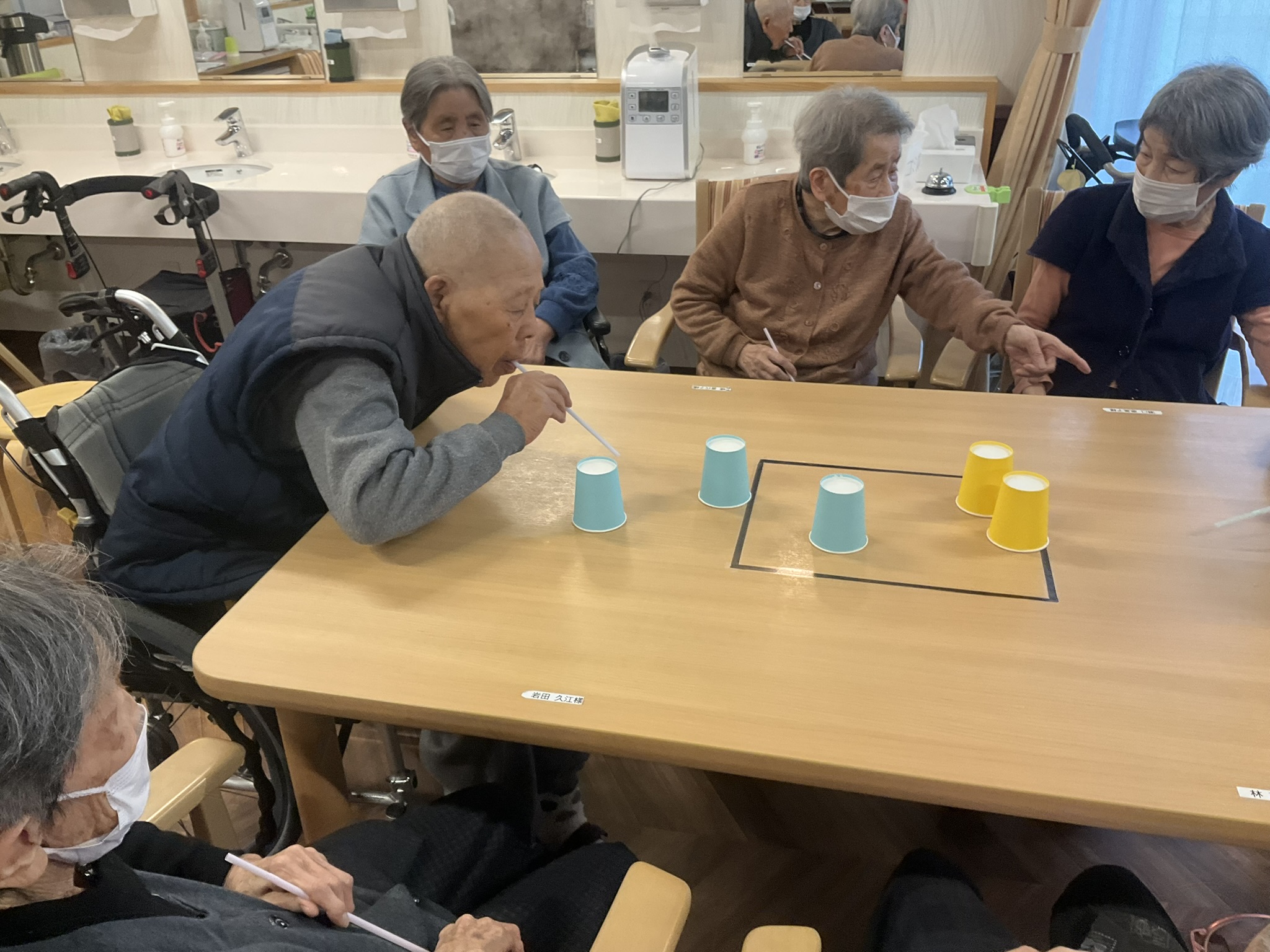 肺活量がすごい利用者様がいらっしゃいまして、スタッフが対戦したのですが、負けていました(笑)