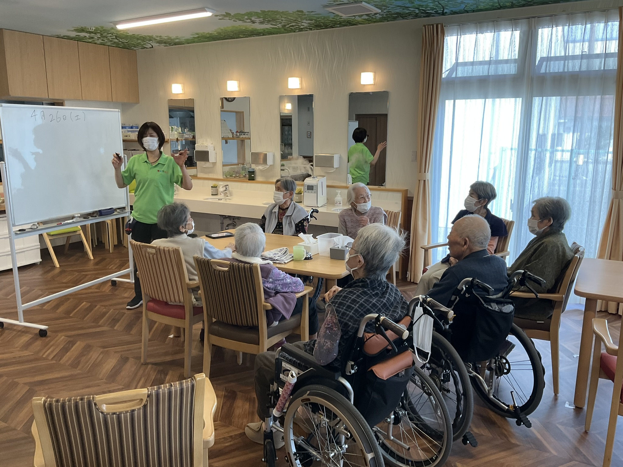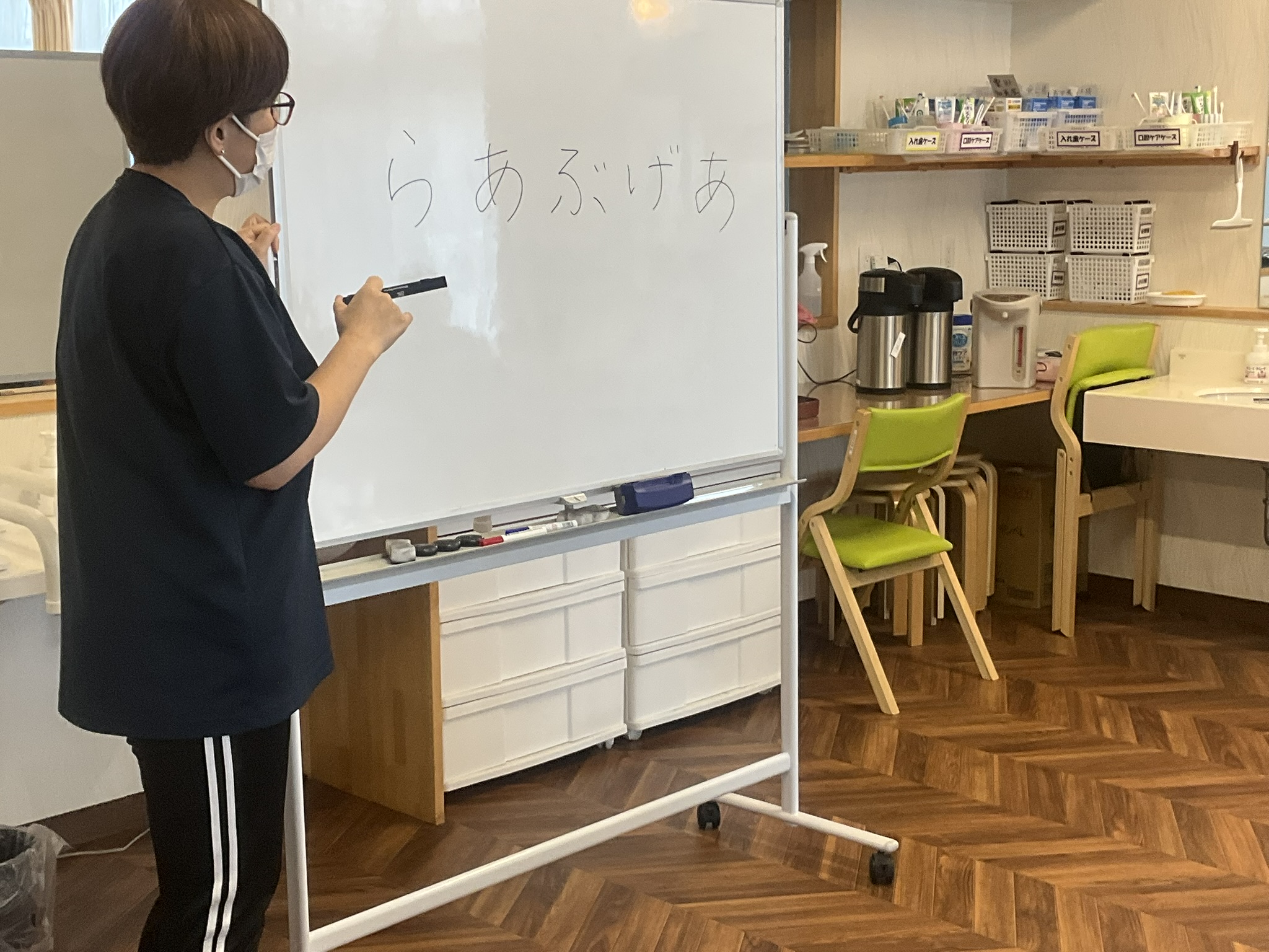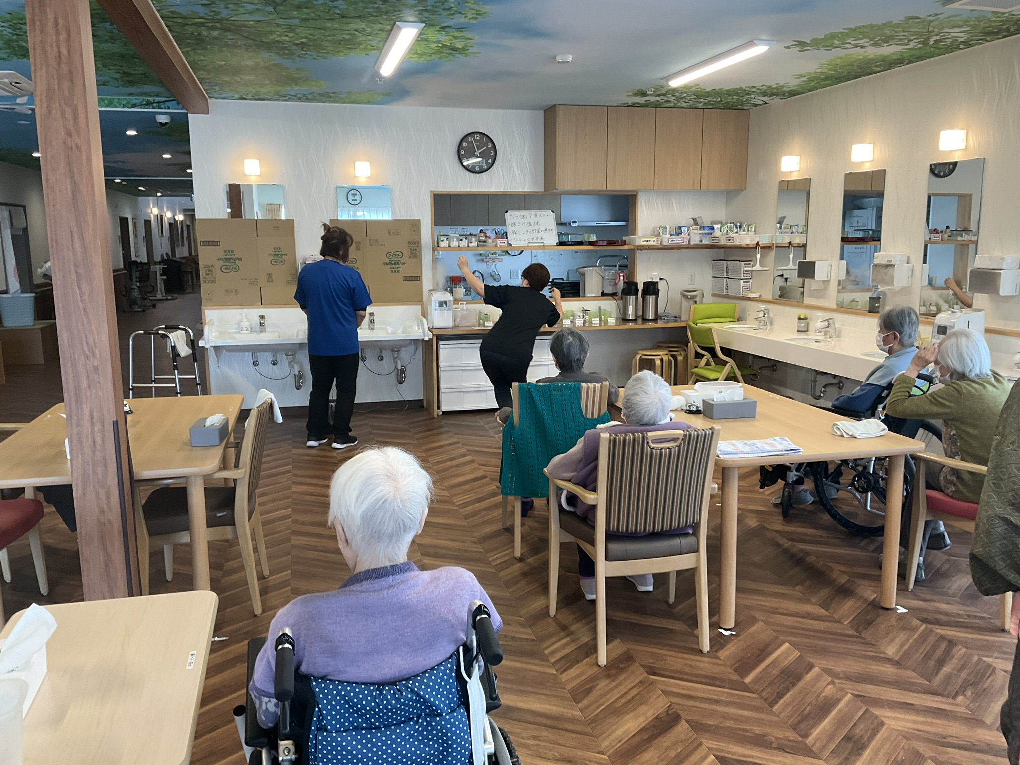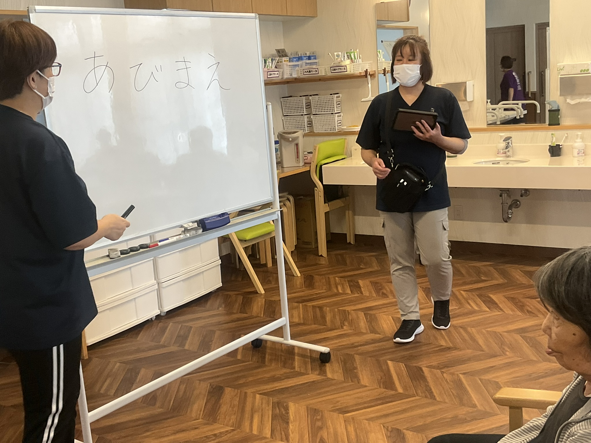 何と書いているか利用者様に当ててもらうゲームなのですが、当てる前にスタッフの動きが面白くてみんなで大笑い( ;∀;)