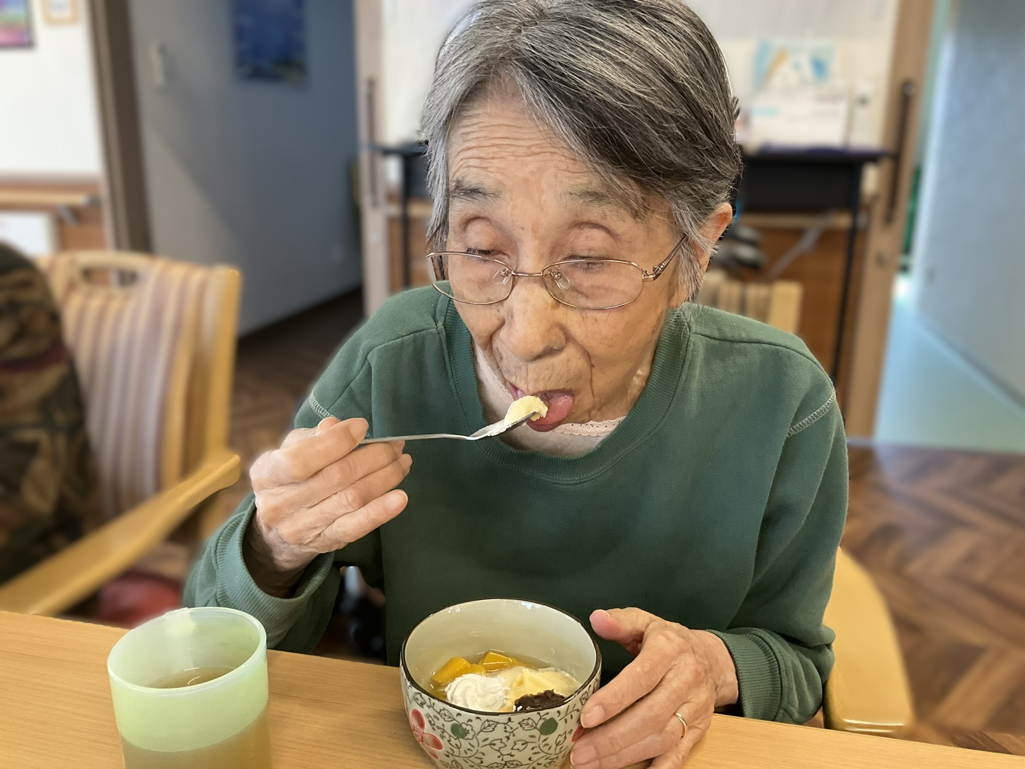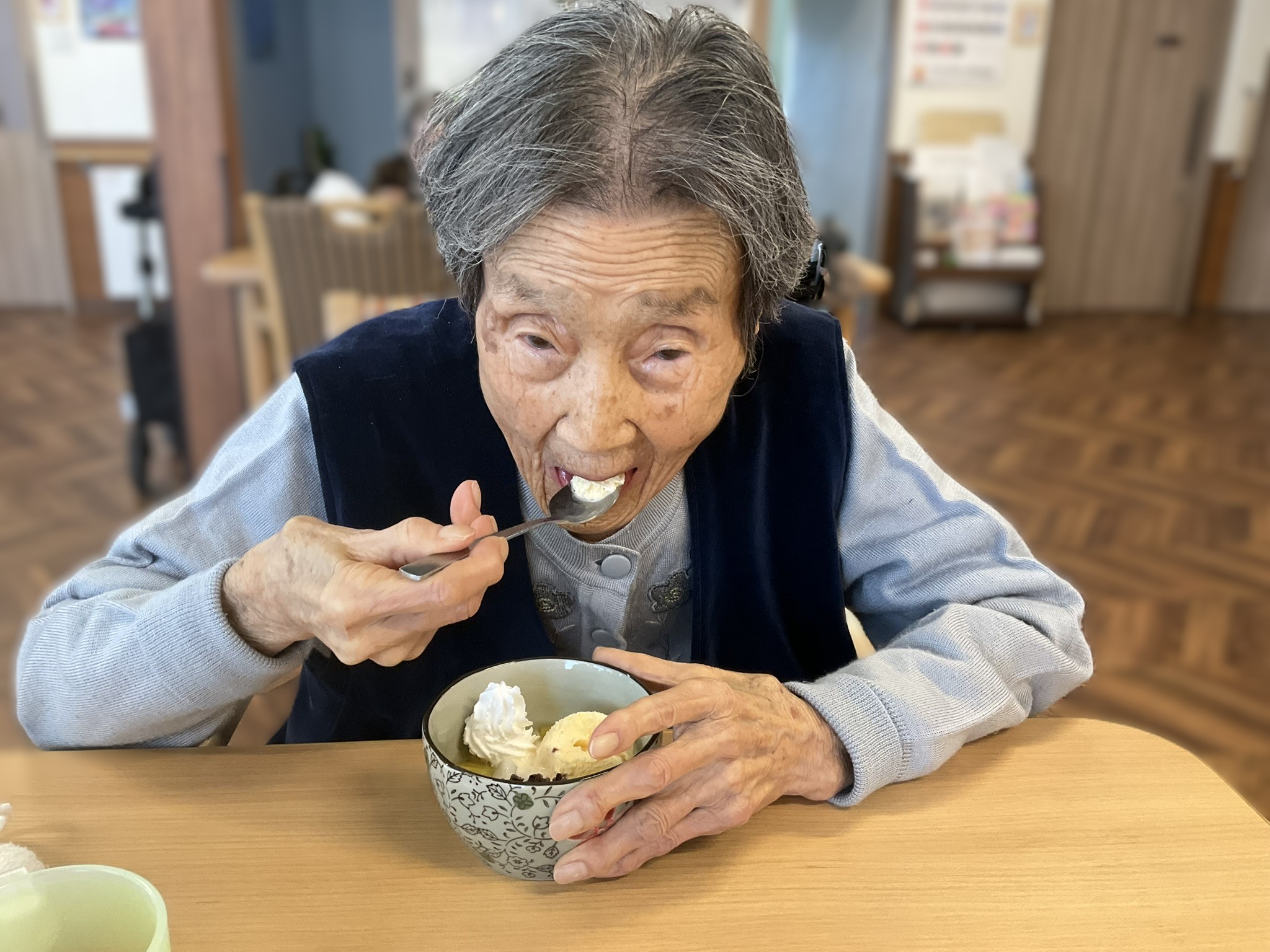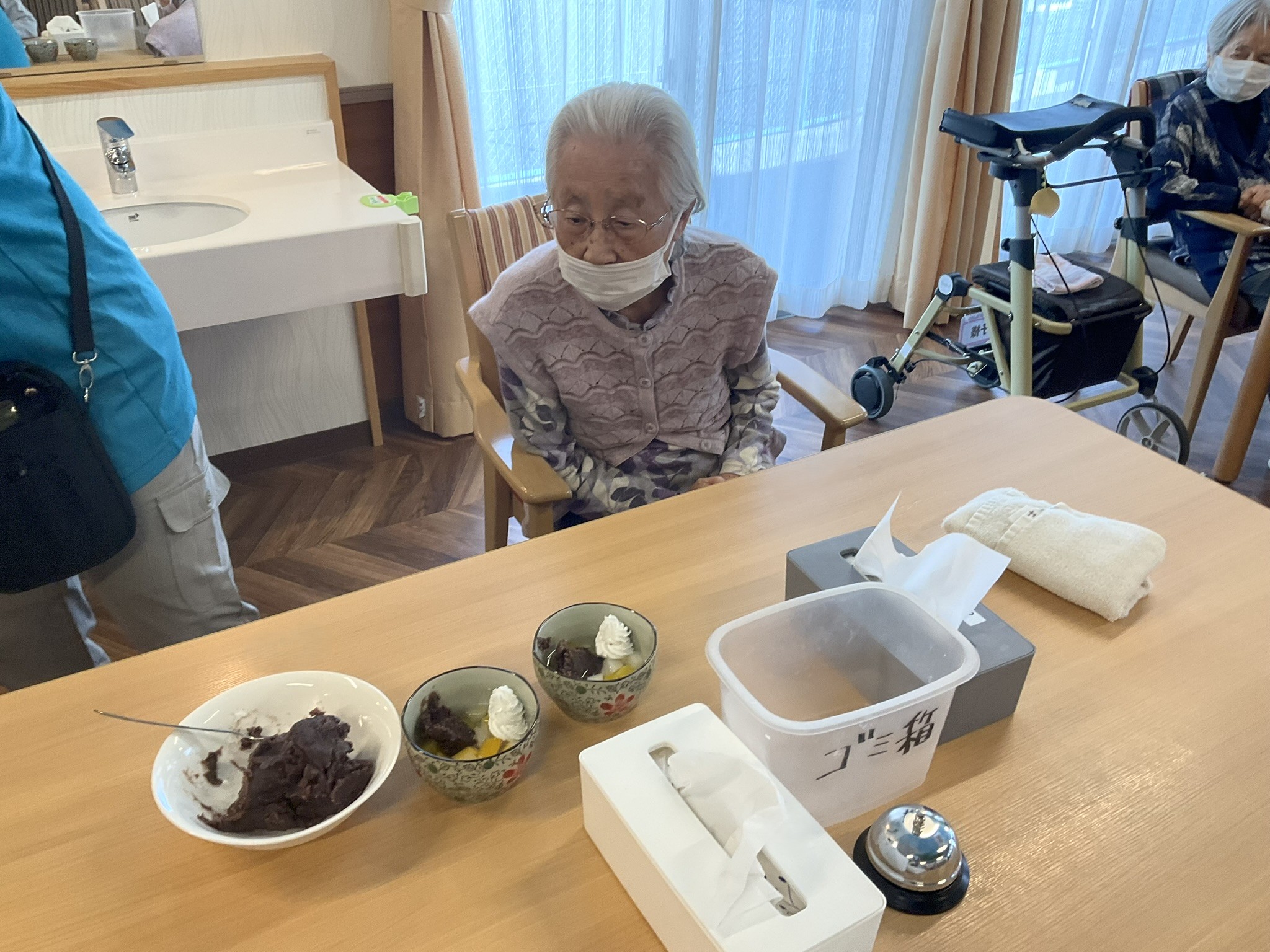 スタッフがお手伝いをしながら、アイスクリームやホイップクリーム、あんこなどを盛り付けていきます。